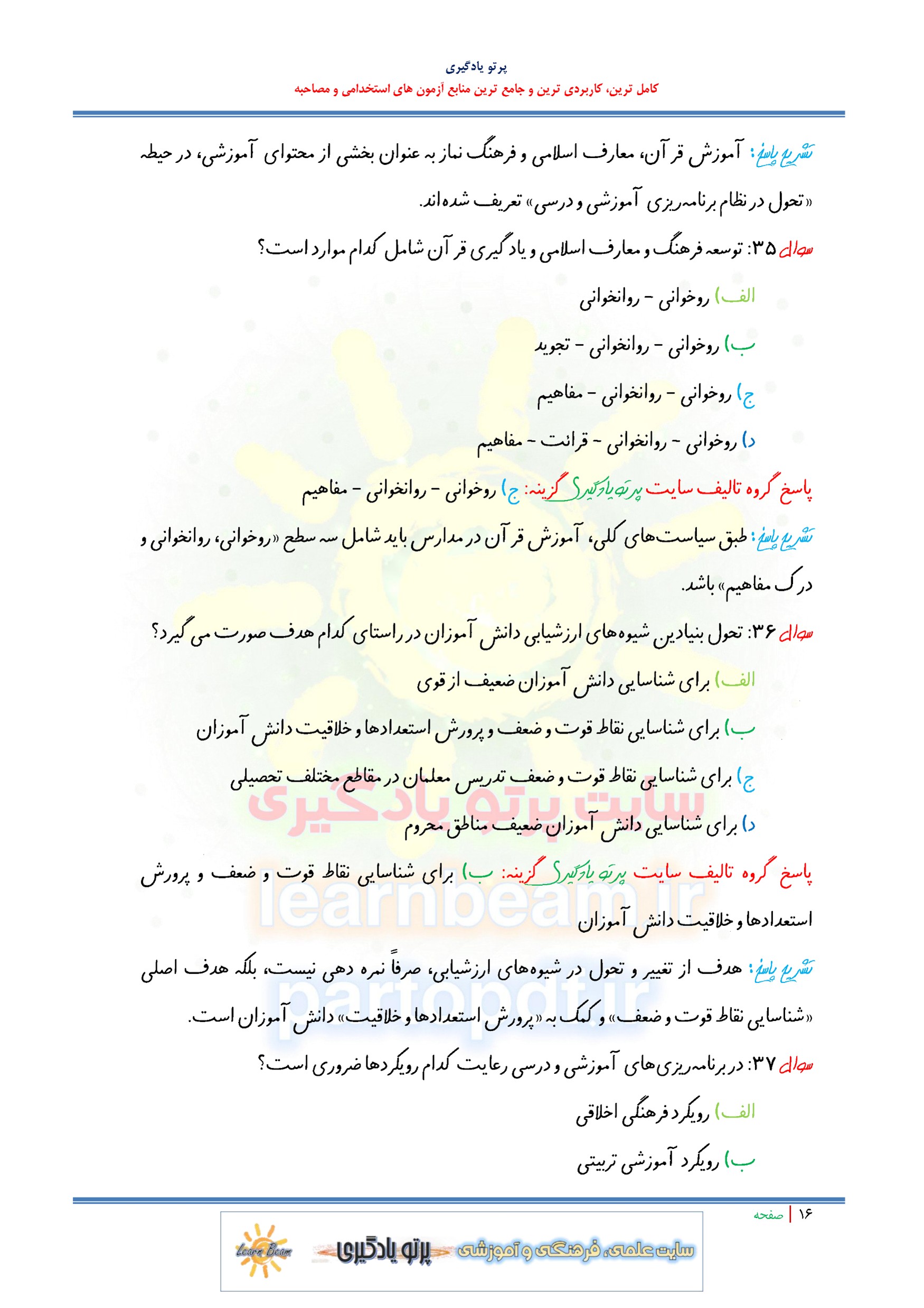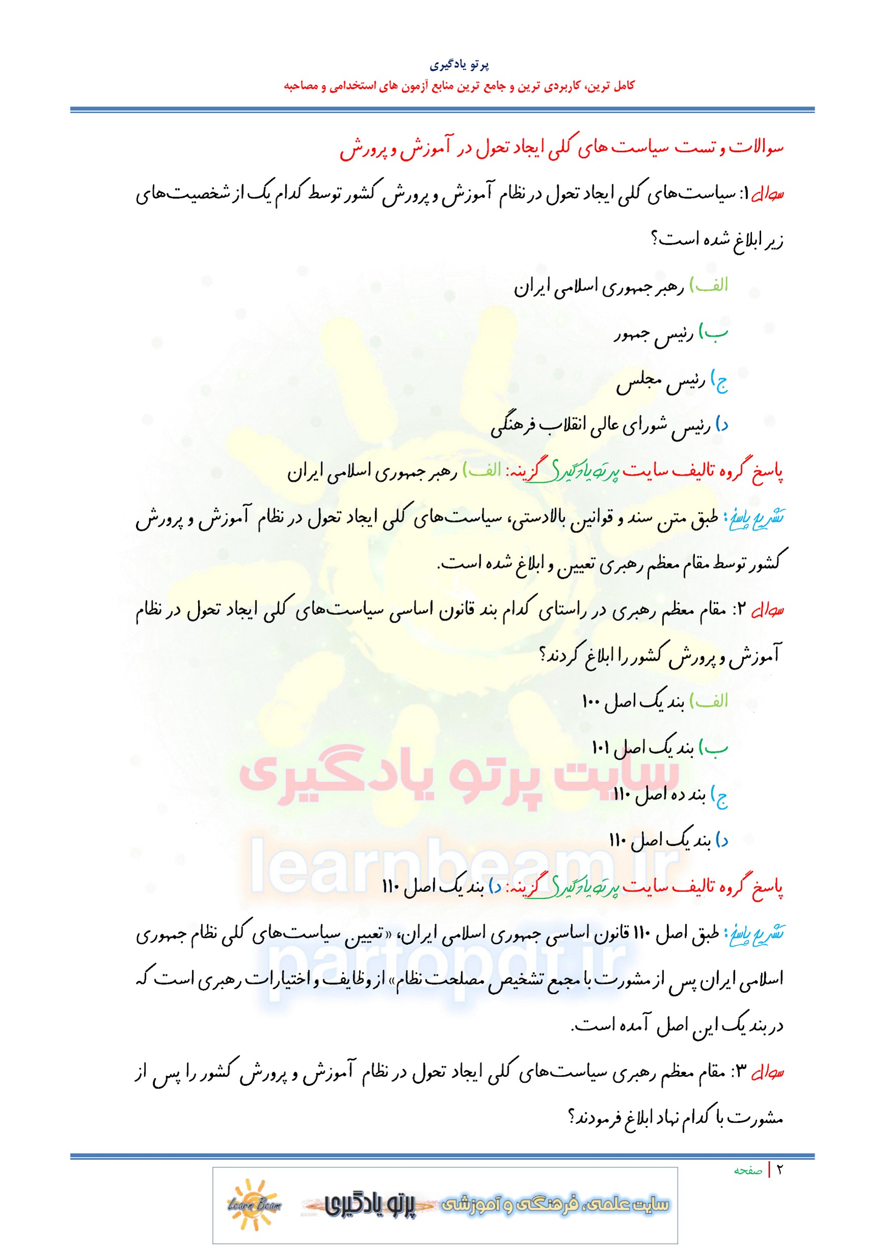 سوالات و تست سیاست های کلی ایجاد تحول در آموزش و پرورش