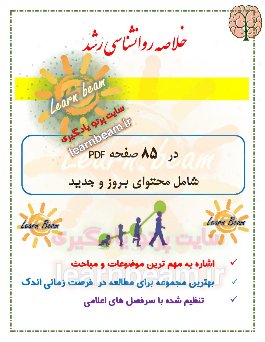 خلاصه کتاب روانشناسی رشد در 85 صفحه در قالب فایل pdf قابل چاپ با کیفیت عالی جهت انسجام ذهنی، خودآزمایی و مطالعه سریع داوطلبین شرکت کننده در آزمون کیفیت بخش آموزش و پرورش سال 1403