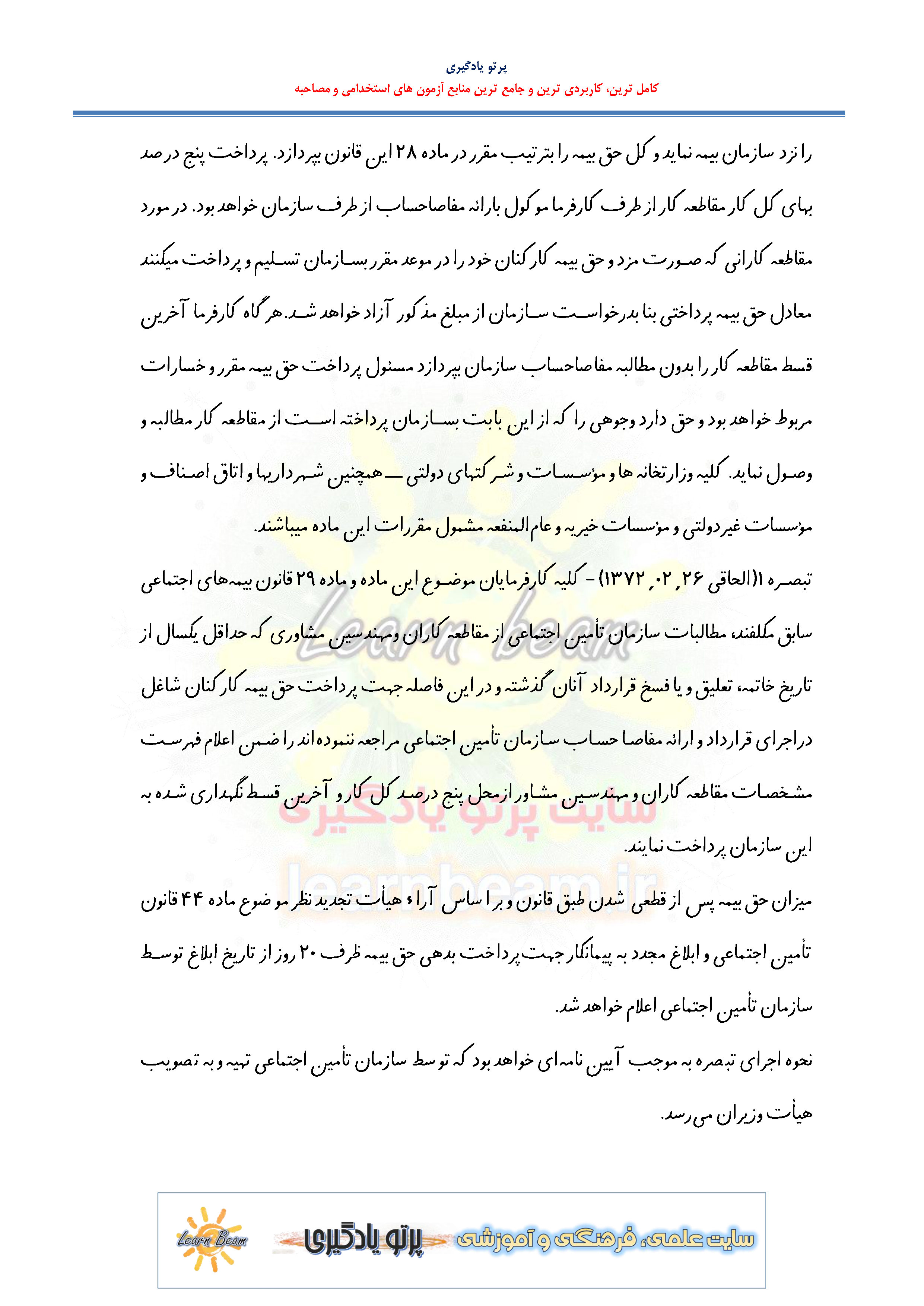 مجموعه قوانین تامین اجتماعی مناسب برای داوطلبین آزمون های استخدامی