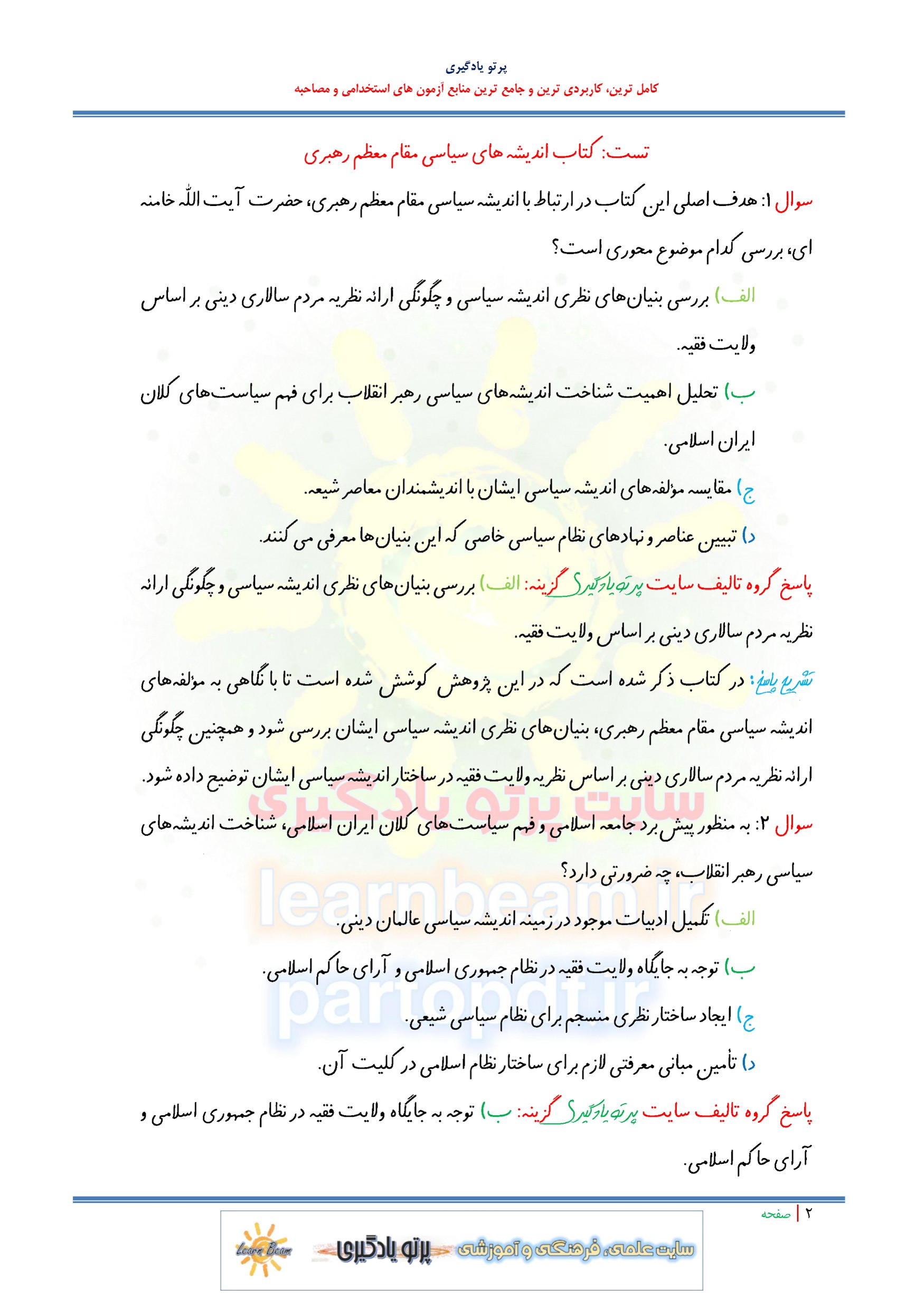 مجموعه تست کتاب اندیشه های سیاسی مقام معظم رهبری