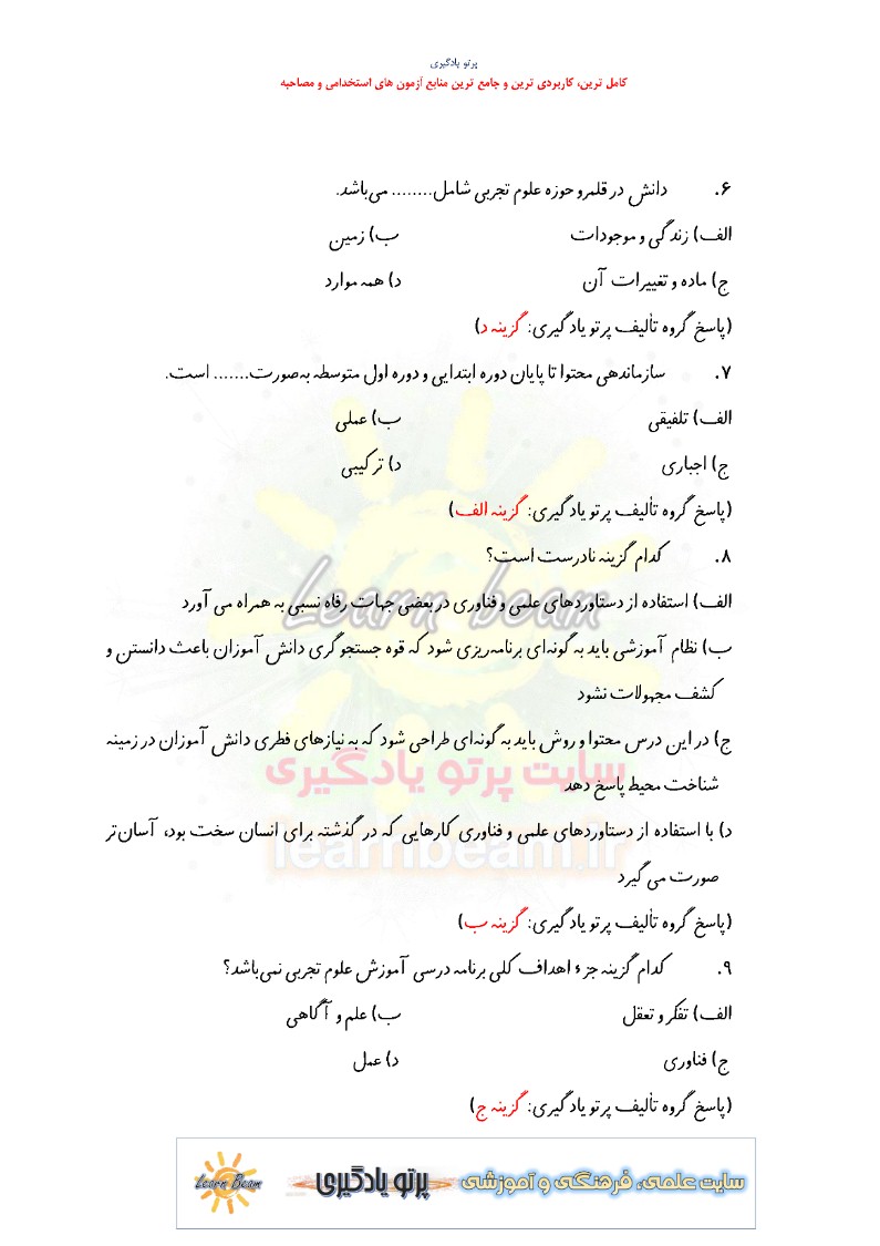 مجموعه تست کتاب راهنما معلم علوم تجربی پایه هشتم