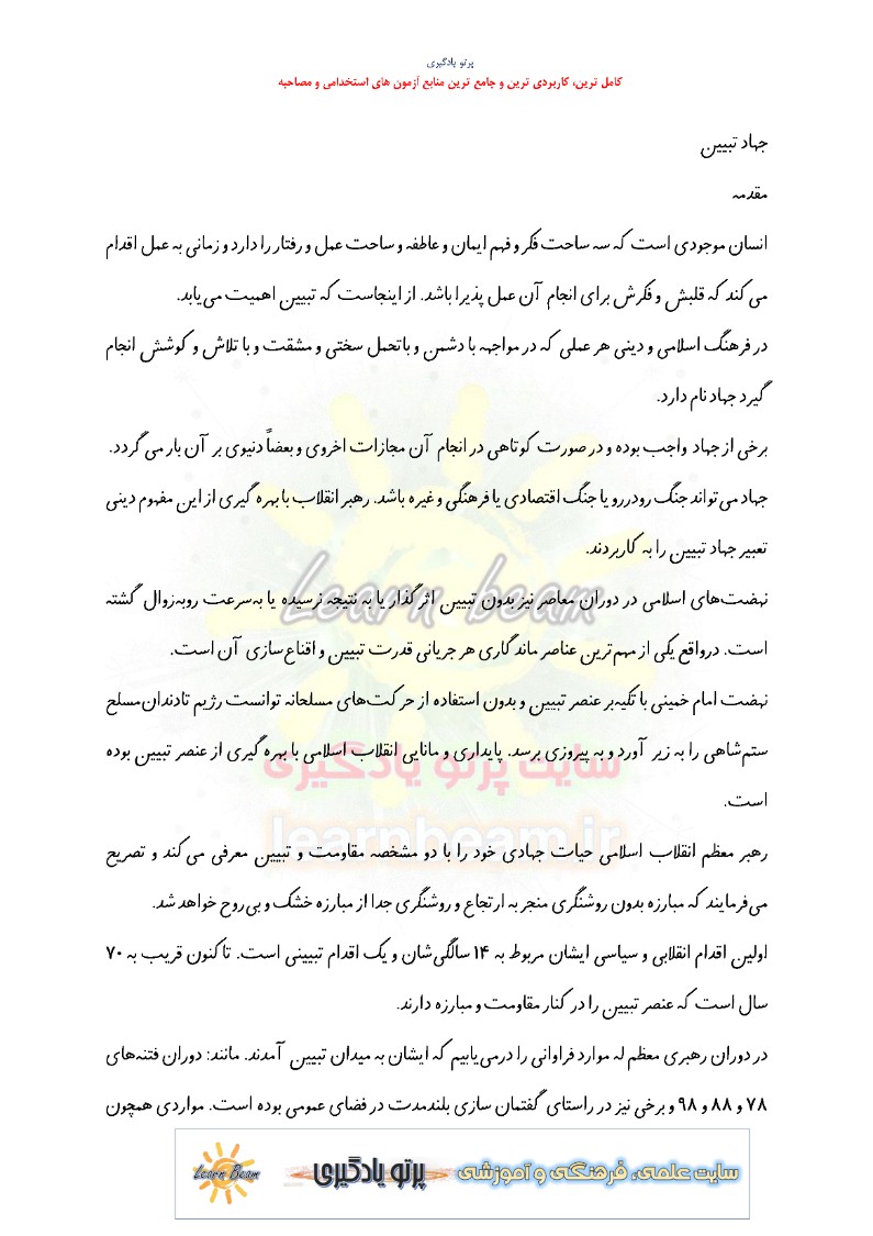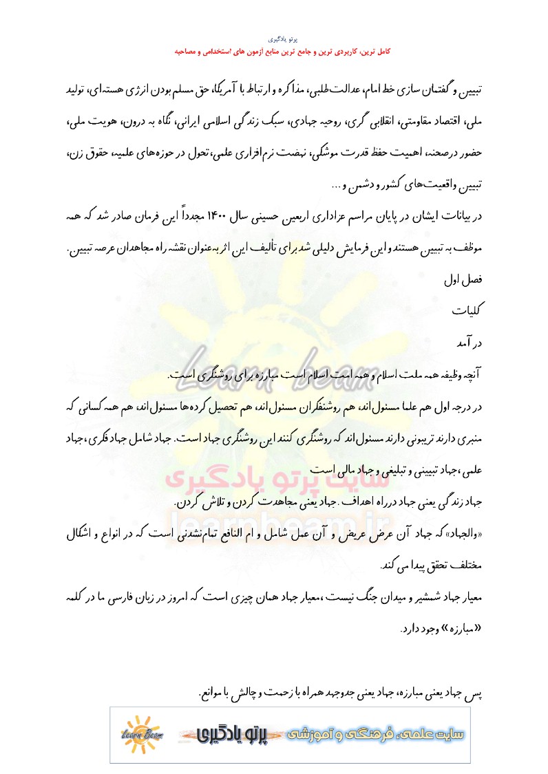 تست کتاب جهاد تبیین در اندیشه آیت الله خامنه ای