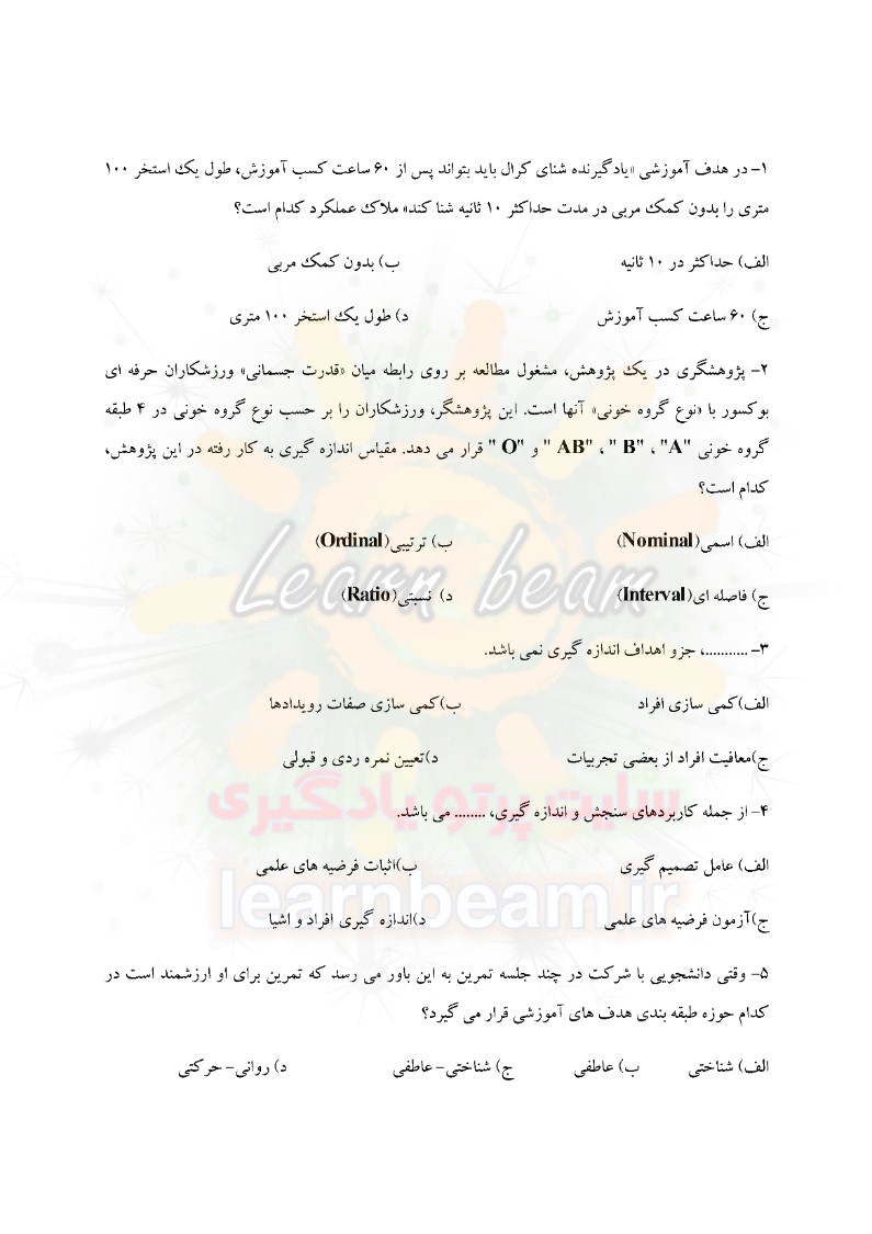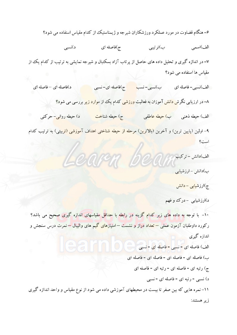 تست کتاب اندازه گيري سنجش و ارزشيابي در تربيت بدني