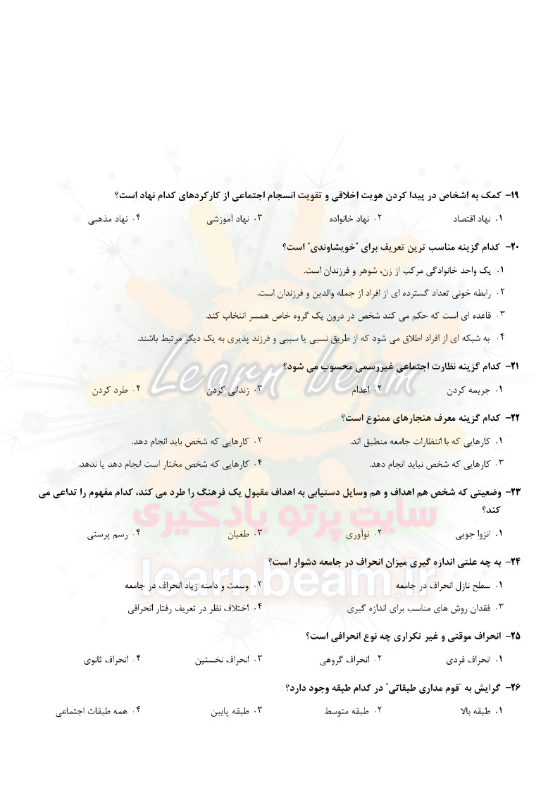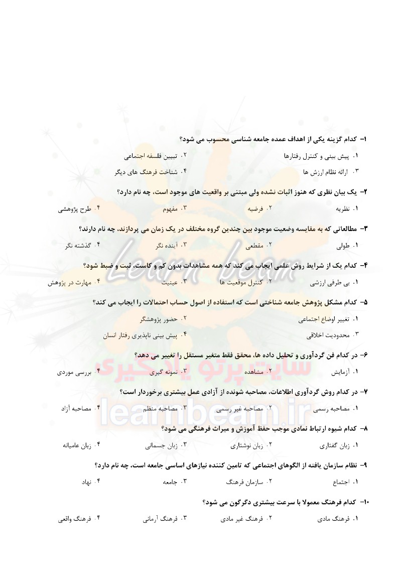 تست کتاب مبانی و نظریه های جامعه شناسی