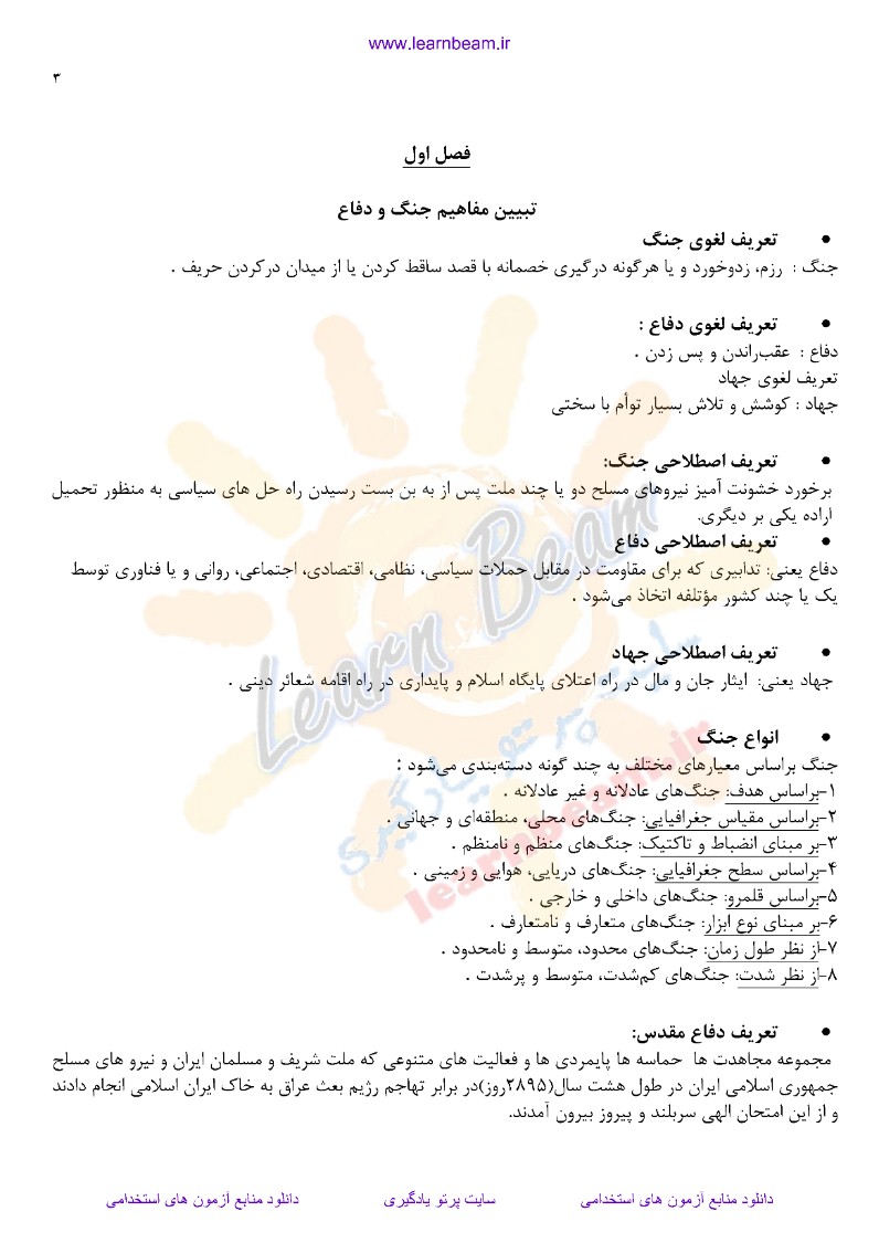 خلاصه و نکات طلایی کتاب آشنايي با علوم و معارف دفاع مقدس