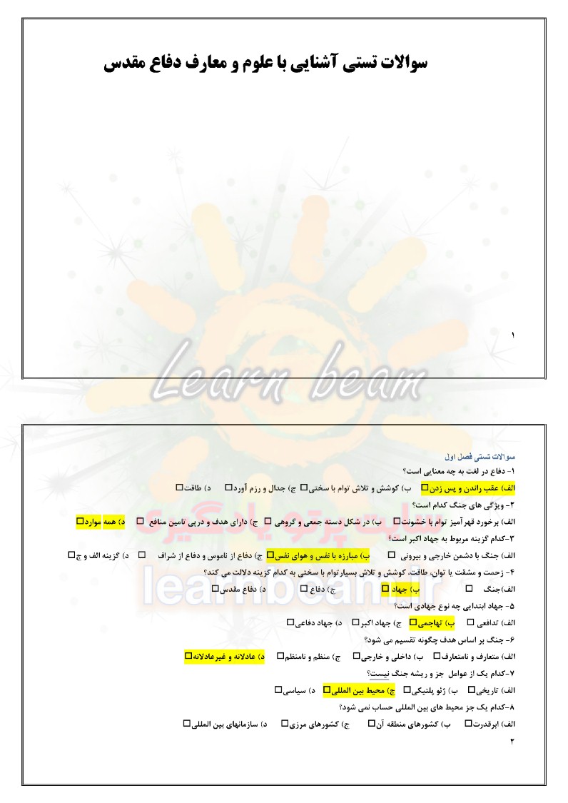 مجموعه تست آشنايي با علوم و معارف دفاع مقدس