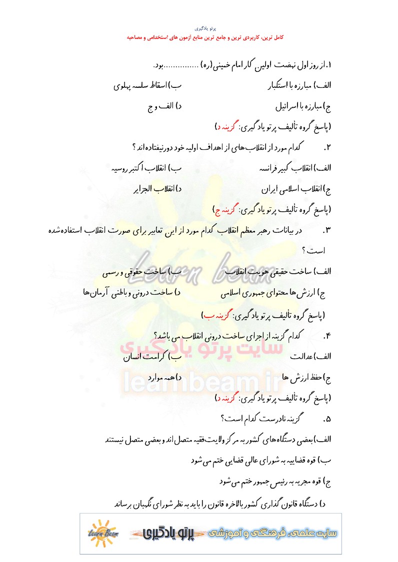 تست کتاب صورت و سیرت انقلاب اسلامی