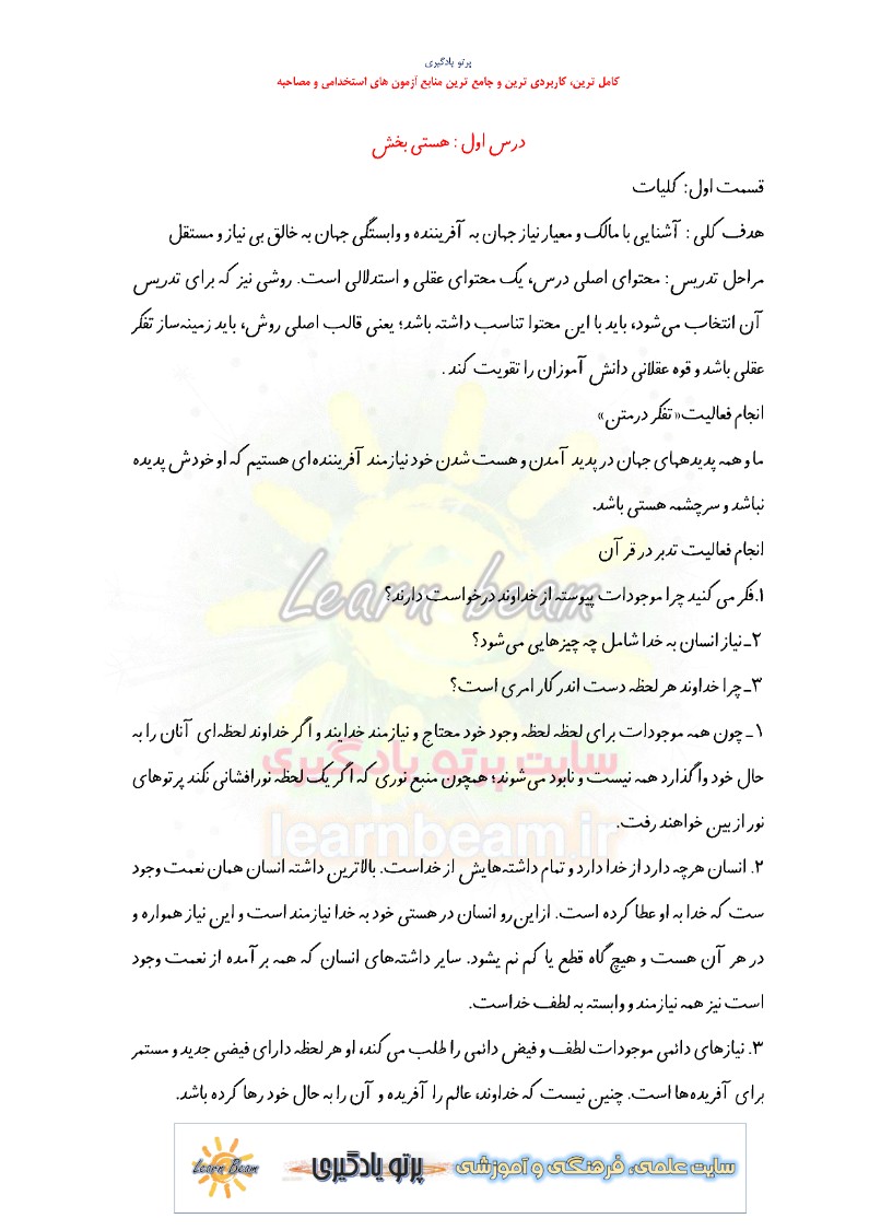 تست کتاب راهنما معلم دین و زندگی 3 دوازدهم