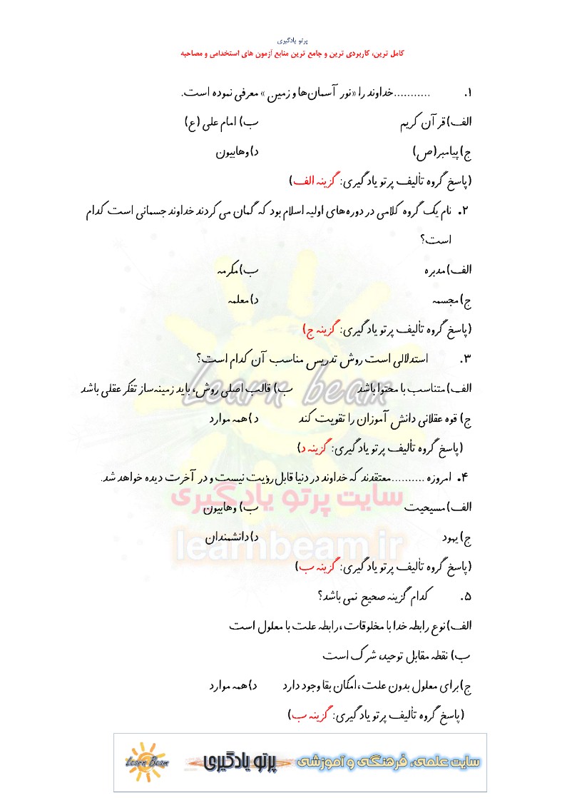 تست کتاب راهنما دین و زندگی 3 پایه دوازدهم
