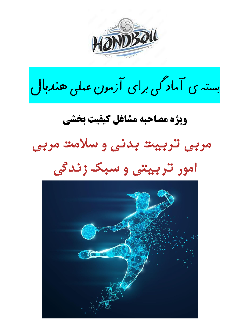 بسته آموزشی آزمون عملی هندبال ویژه مربی تربیت بدنی و سلامت - مربی امور تربیتی و سبک زندگی مطابق با آخرین اطلاعیه های ستاد ارزیابی تکمیلی آزمون استخدامی مشاغل کیفیت بخشی سال 1403