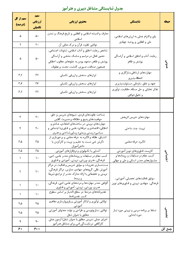 در سه حیطه (عمومی، اختصاصی و تخصصی)