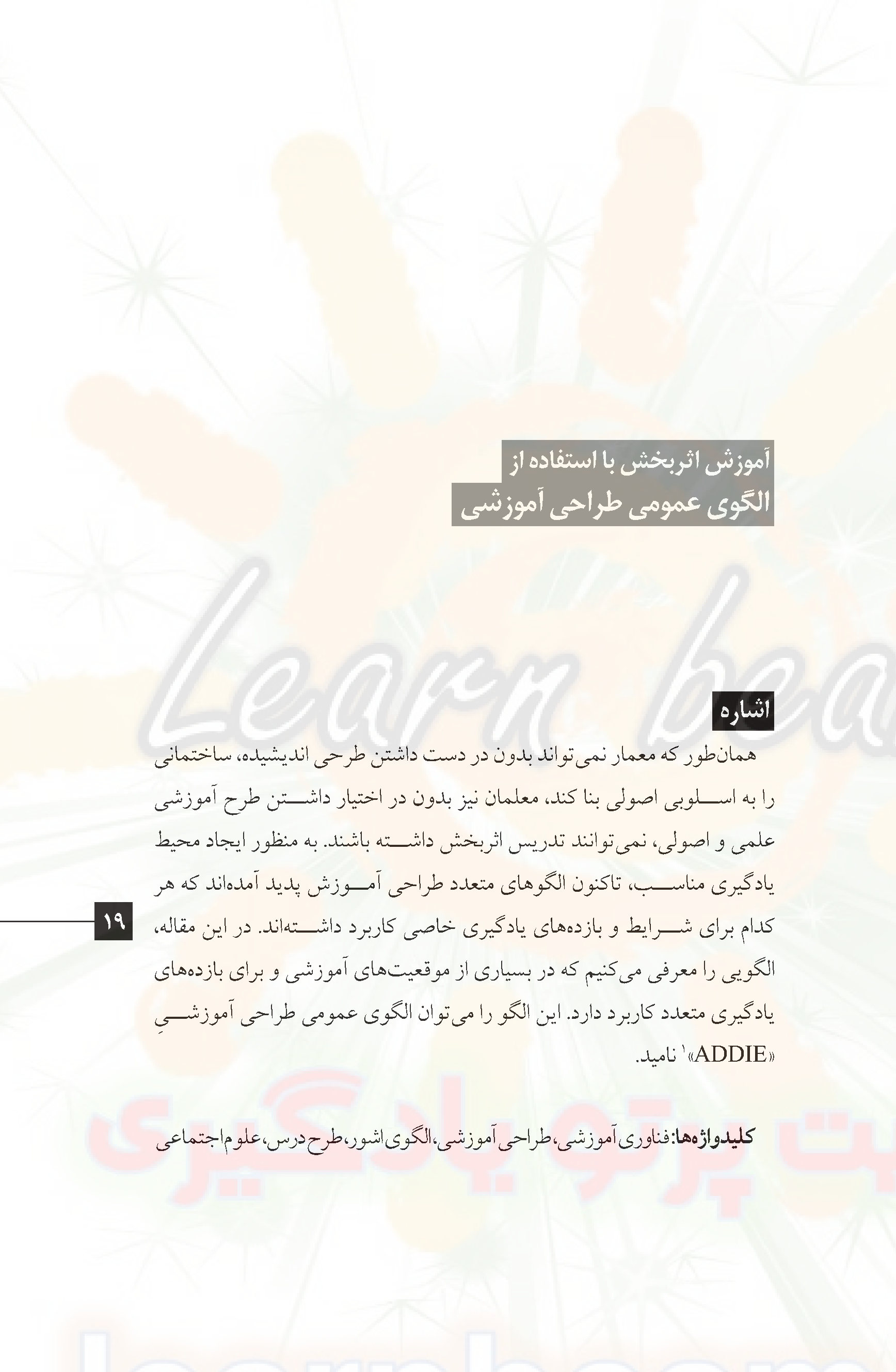 506 روز پیش ارسال پاسخاصول مربوط به سناریو نویسی، عوامل موثر در تدریس موثر، طراحی آموزشی، بازی وارسازی، و .... در خصوص تدریس در جزوه در نظر گرفته شده است. نگران نباشید.