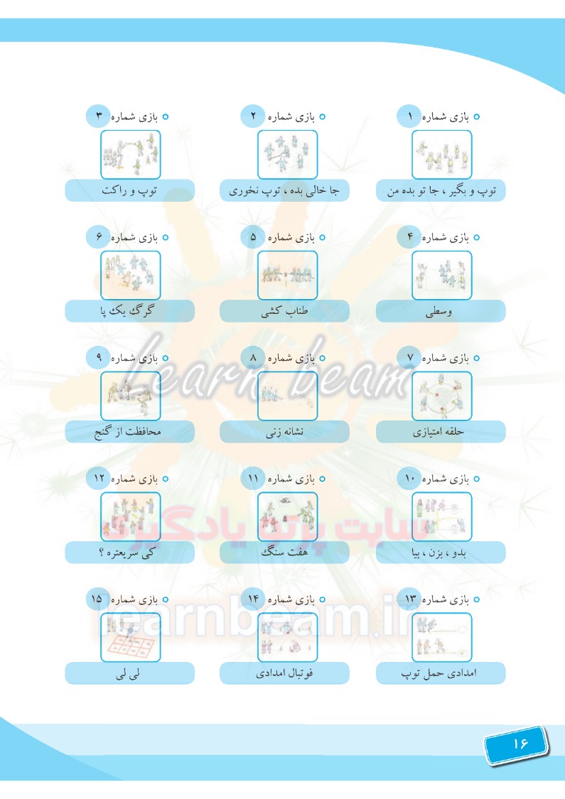 - آشنایی با 25 عنوان بازی به همراه اهداف، شرح بازی، تصویر بازی و جداول ارزشیابی از بازی