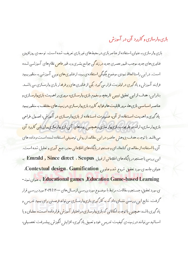 - بازی وارسازی و کاربرد و کلیات مربوط به اصول، قواعد و ...