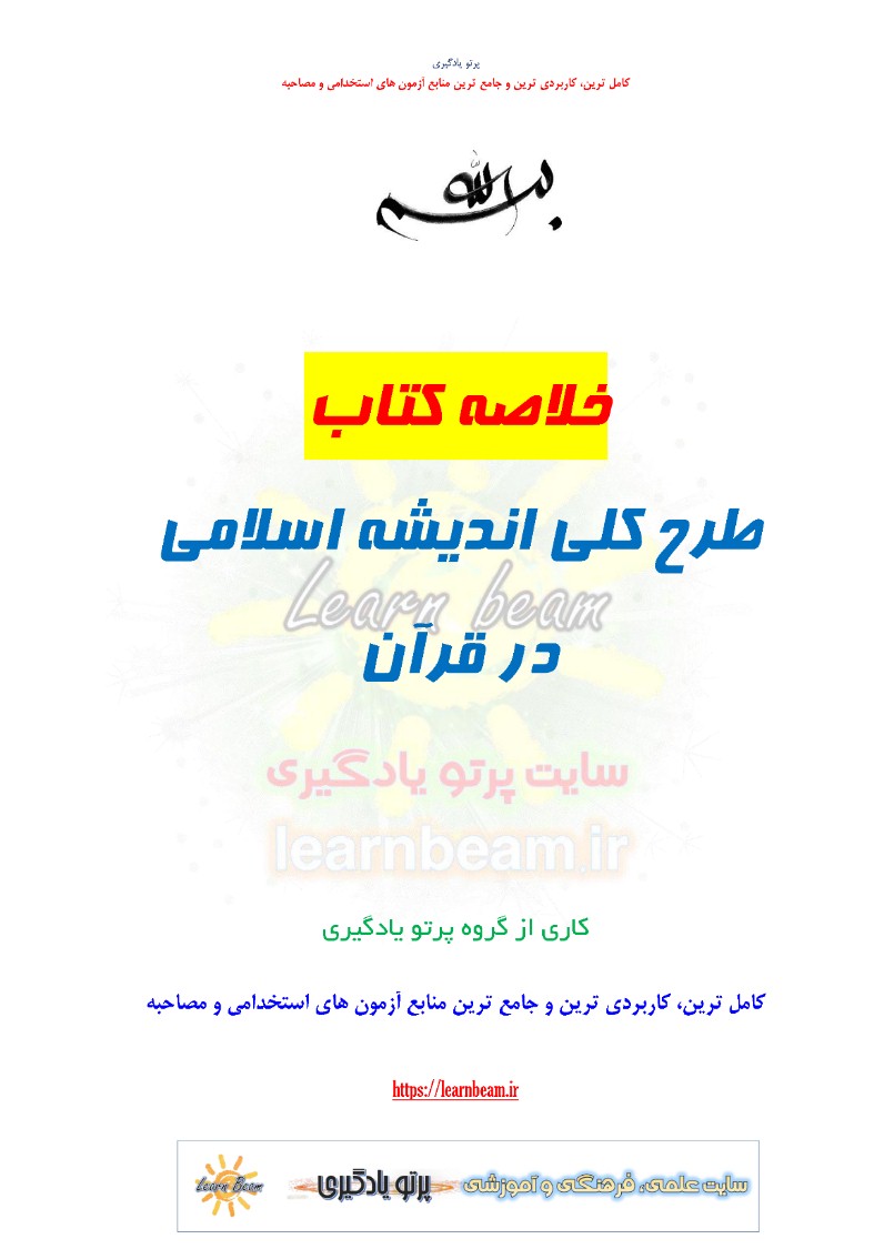 خلاصه کتاب طرح کلی اندیشه اسلامی در قرآن در 60 صفحه در قالب فایل pdf قابل چاپ با کیفیت عالی جهت انسجام ذهنی، خودآزمایی و مطالعه سریع داوطلبین شرکت کننده در آزمون های استخدامی و استخدامی آموزش و پرورش مطابق با دفترچه راهنمای ثبت نام مطابق با سرفصل های اعلام شده در دفترچه راهنمای ثبت نام.