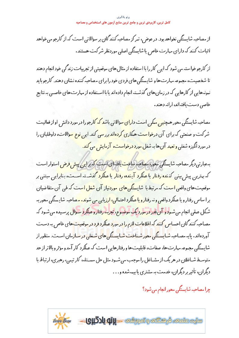- مطابق با محور های اعلامی مصاحبه شایستگی محور