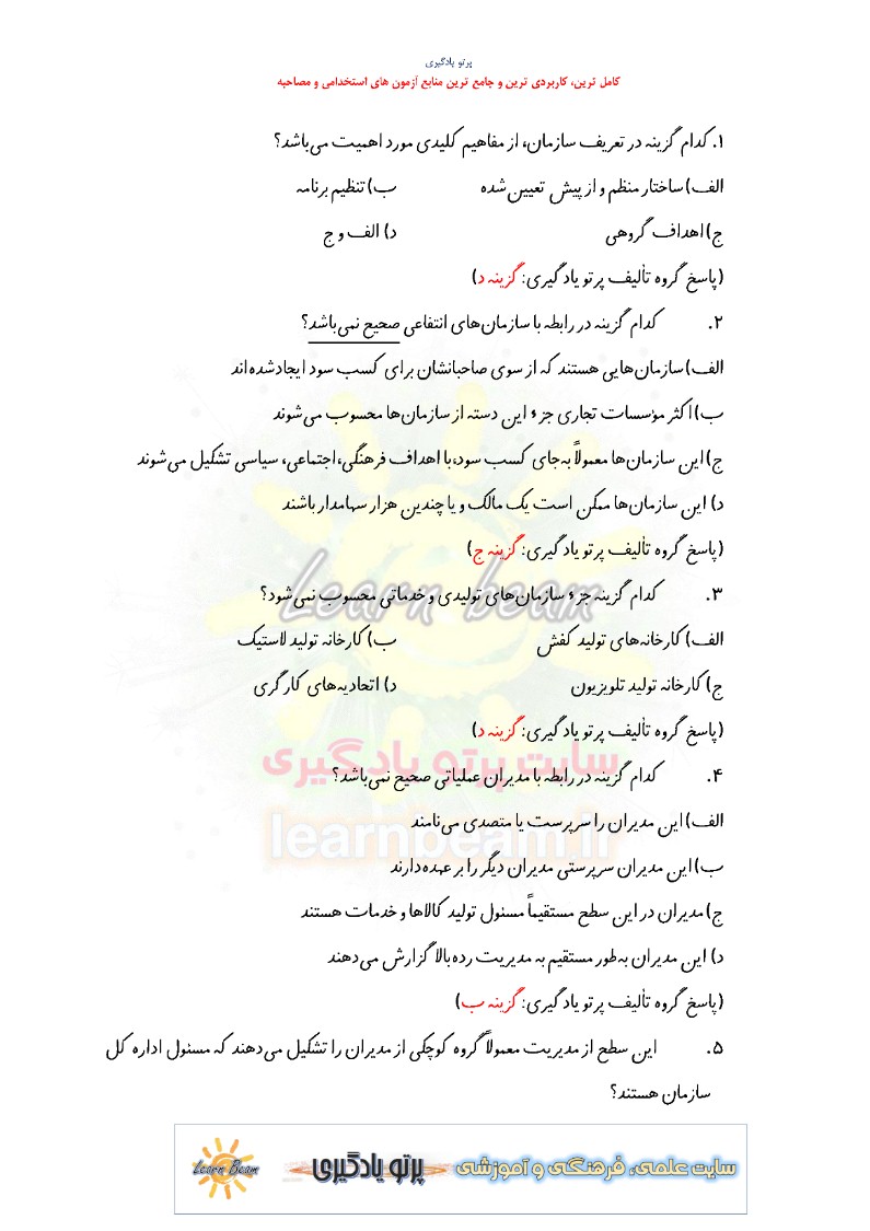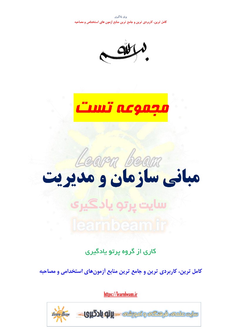 تست مبانی سازمان و مدیریت شامل 99 تست باپاسخ در 23 صفحه در قالب فایل pdf قابل چاپ با کیفیت عالی جهت انسجام ذهنی، خودآزمایی و مطالعه سریع داوطلبین شرکت کننده در آزمون های استخدامی دستگاه های اجرایی مطابق با دفترچه راهنمای ثبت نام دوازدهمین امتحان مشترک فراگیر دستگاه های اجرایی کشور و مطابق با سرفصل های اعلام شده در دفترچه راهنمای ثبت نام می باشد