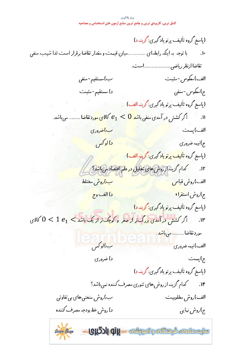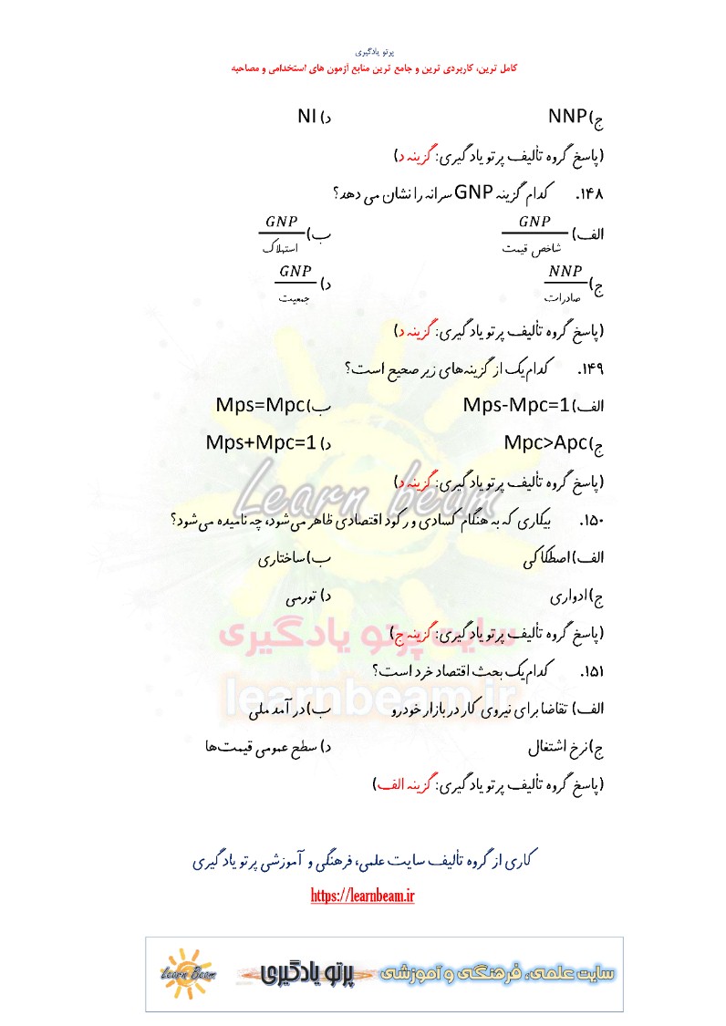 تست کتاب اصول علم اقتصاد شامل 151 تست باپاسخ در 33 صفحه در قالب فایل pdf قابل چاپ با کیفیت عالی جهت انسجام ذهنی، خودآزمایی و مطالعه سریع داوطلبین شرکت کننده در آزمون های استخدامی دستگاه های اجرایی مطابق با دفترچه راهنمای ثبت نام و مطابق با سرفصل های اعلام شده در دفترچه راهنمای ثبت نام می باشد