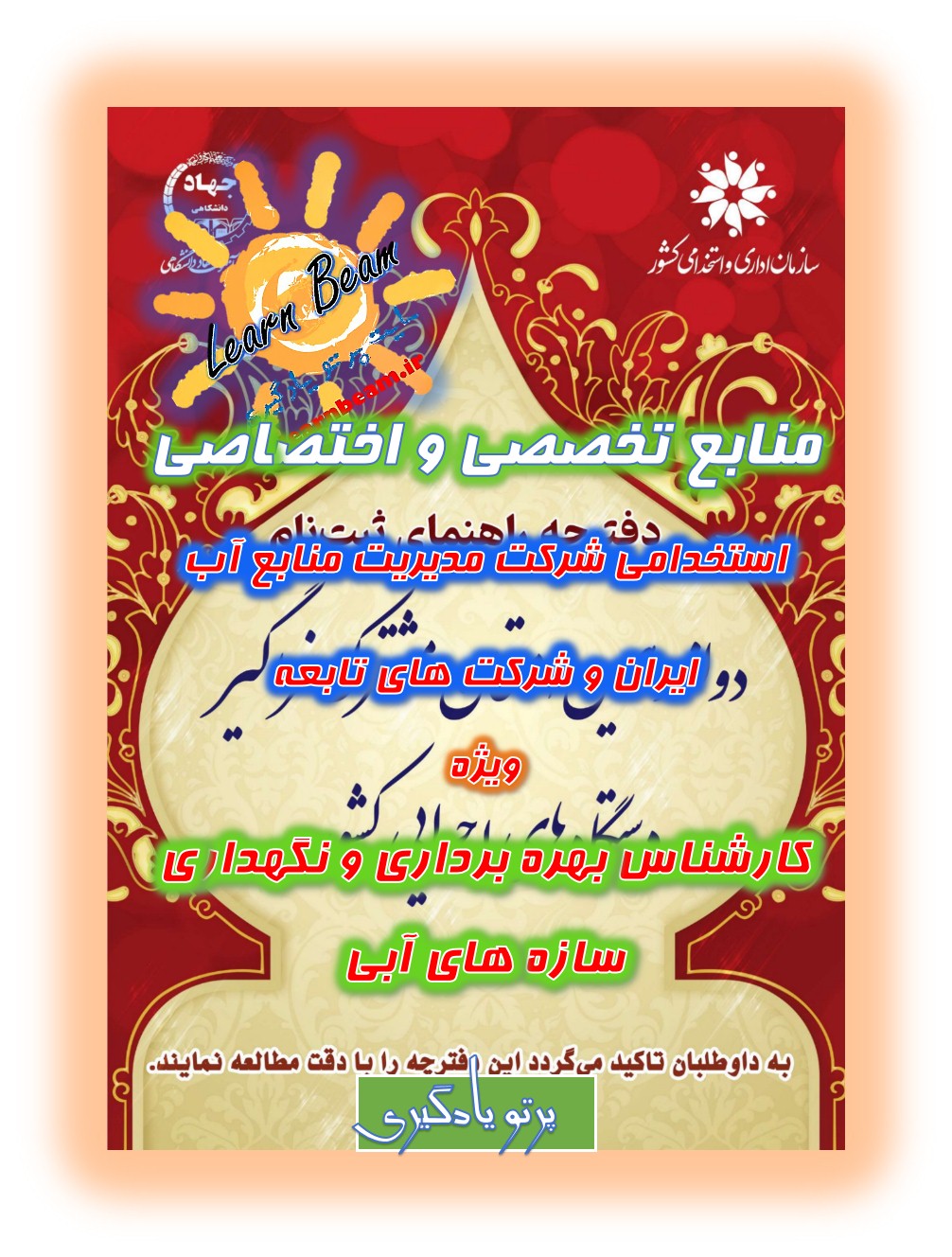 منابع تخصصی و اختصاصی کارشناس بهره برداری و نگهداری سازه های آبی شرکت مدیریت منابع آب ایران و شرکت های تابعه استخدامی شرکت مدیریت منابع آب ایران سال 1403. شرکت مدیریت منابع آب ایران در سال 1403 مطابق با منابع دفترچه استخدامی دوازدهمین امتحان مشترک فراگیر دستگاههای اجرایی به منظور تأمین نیروی مورد نیاز و خدمترسانی شایسته به هموطنان، برای تصدی عنوان شغلی کارشناس بهره برداری و نگهداری سازه های آبی افراد واجد شرایط را از طریق برگزاری آزمون کتبی در حیطههای عمومی و تخصصی و اختصاصی، ارزیابی تکمیلی و طی مراحل گزینش بهصورت پیمانی استخدام مینماید. داوطلبان محترم می توانند با تهیه منابع تخصصی و اختصاصی استخدامی کارشناس بهره برداری و نگهداری سازه های آبی برای آزمون استخدامی این وزارتخانه که روز جمعه مورخ 12مردادماه ۱۴۰3 برگزار خواهد شد خود را آماده و توانمند نمایند. تلاش گروه پرتو یادگیری با تهیه پک کامل این آزمون استخدامی، راحتی و دستیابی عادلانه همه داوطلبین این آزمون استخدامی به منابع کامل می باشد. ضمن آرزوی موفقیت برای یکایک عزیزان در آزمون استخدامی پیش رو.