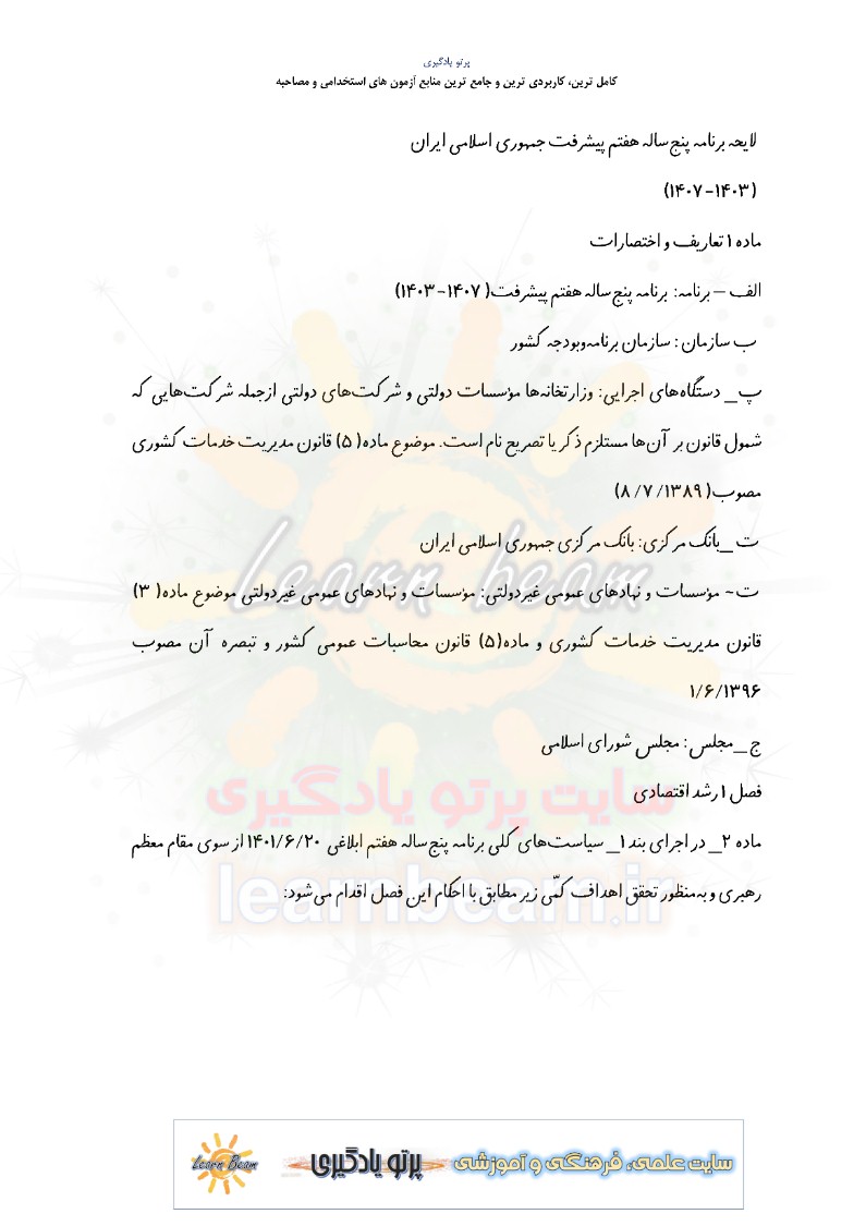 مجموعه خلاصه و نکات کلیدی برنامه هفتم توسعه