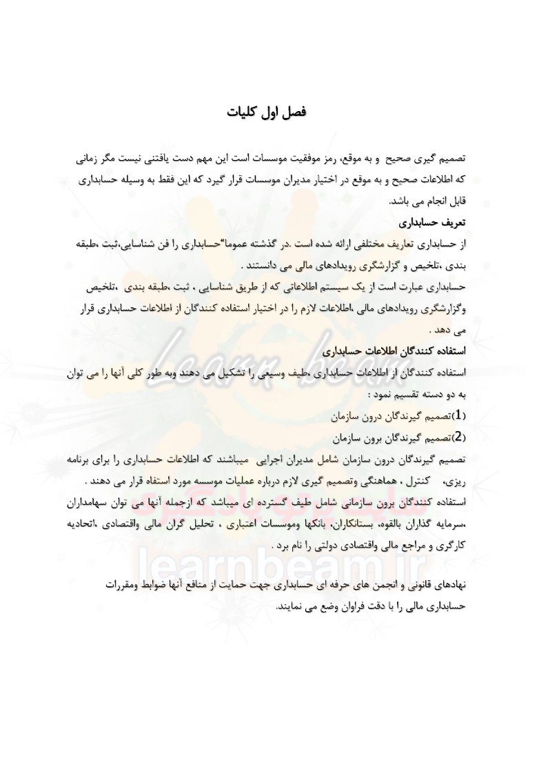 خلاصه کتاب اصول حسابداری در 53 صفحه در قالب فایل pdf قابل چاپ با کیفیت عالی جهت انسجام ذهنی، خودآزمایی و مطالعه سریع داوطلبین شرکت کننده در دوازدهمین امتحان مشترک فراگیر دستگاه های اجرایی کشور و استخدامی وزارت اقتصاد و دارایی مطابق با دفترچه ثبت نام و مطابق با سرفصل های اعلام شده در دفترچه راهنمای ثبت نام منابع تخصصی و اختصاصی حسابرس می باشد.