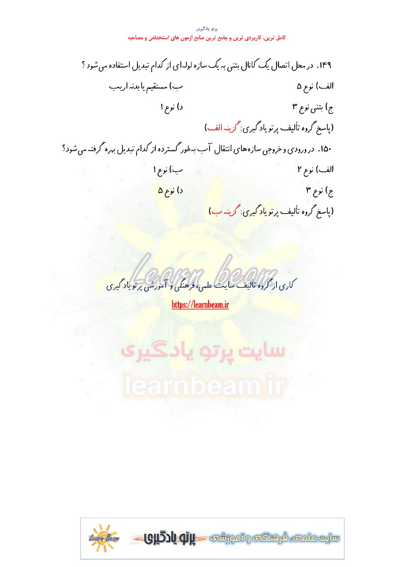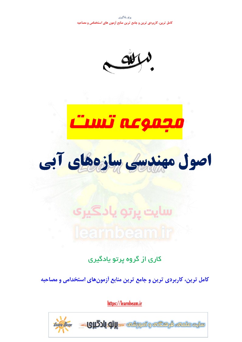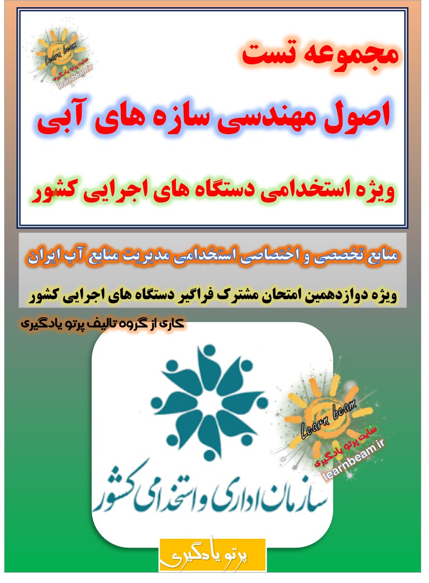 تست اصول مهندسی سازه های آبی شامل 150 تست باپاسخ در 34 صفحه در قالب فایل pdf قابل چاپ با کیفیت عالی جهت انسجام ذهنی، خودآزمایی و مطالعه سریع داوطلبین شرکت کننده در دوازدهمین امتحان مشترک فراگیر دستگاه های اجرایی کشور و استخدامی شرکت مدیریت منابع آب ایران و شرکت های تابعه مطابق با دفترچه ثبت نام و مطابق با سرفصل های اعلام شده در دفترچه راهنمای ثبت نام منابع تخصصی و اختصاصی کارشناس بهره برداری و نگهداری سازه های آبی می باشد.