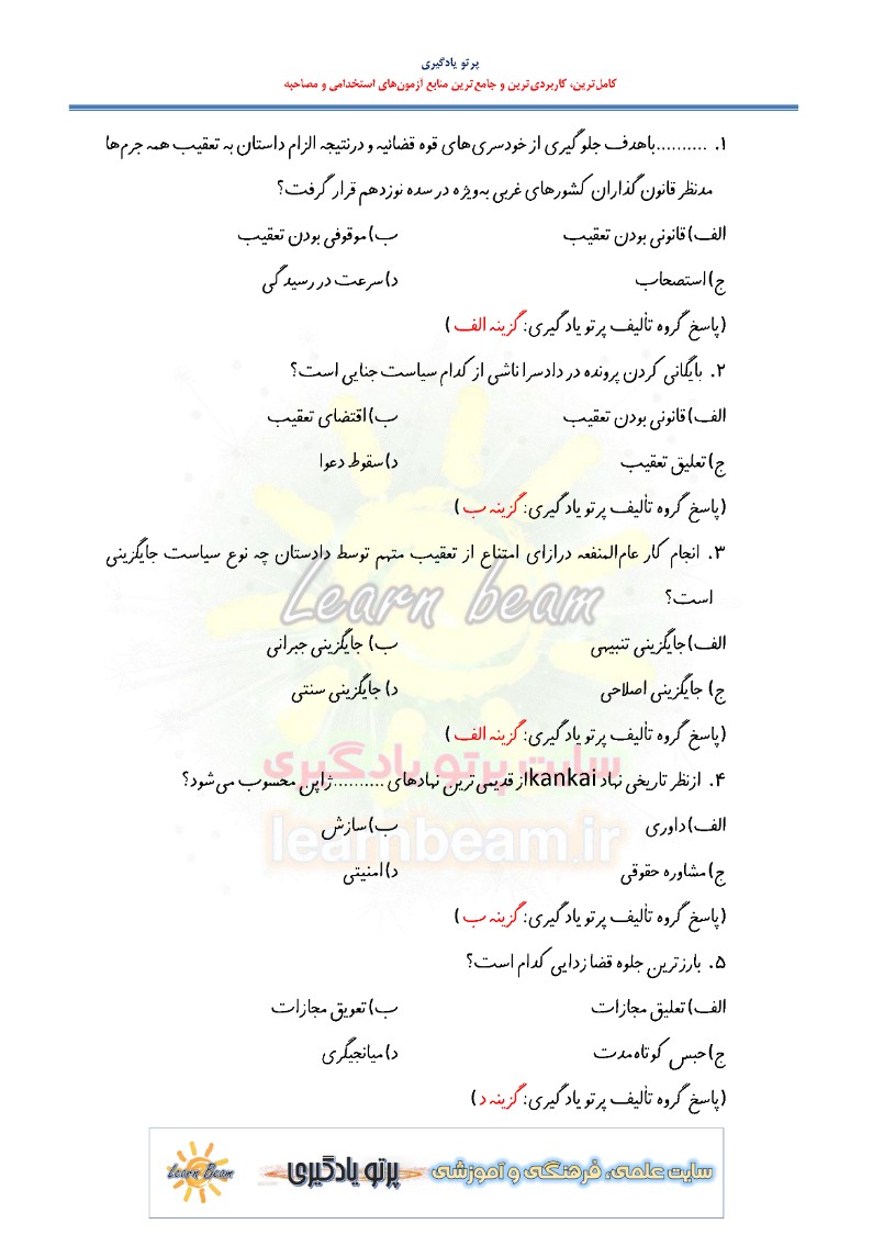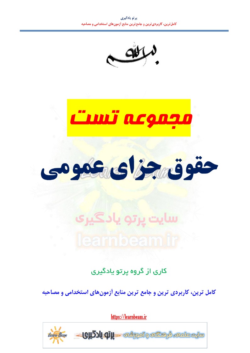 تست حقوق جزای عمومی شامل 100 تست باپاسخ در 23 صفحه در قالب فایل pdf قابل چاپ با کیفیت عالی جهت انسجام ذهنی، خودآزمایی و مطالعه سریع داوطلبین شرکت کننده در آزمون های استخدامی دستگاه های اجرایی مطابق با دفترچه راهنمای ثبت نام و مطابق با سرفصل های اعلام شده در دفترچه راهنمای ثبت نام می باشد