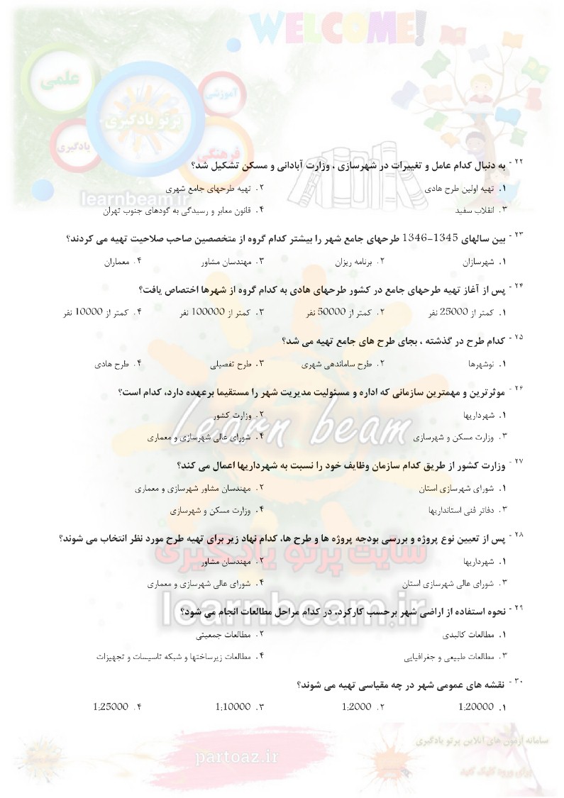 دانلود و مطالعه تست مبانی برنامه ریزی شهری و روستایی در 25 صفحه برای آماگی داوطلبان شرکت کننده در آزمون های استخدامی توصیه می گردد.