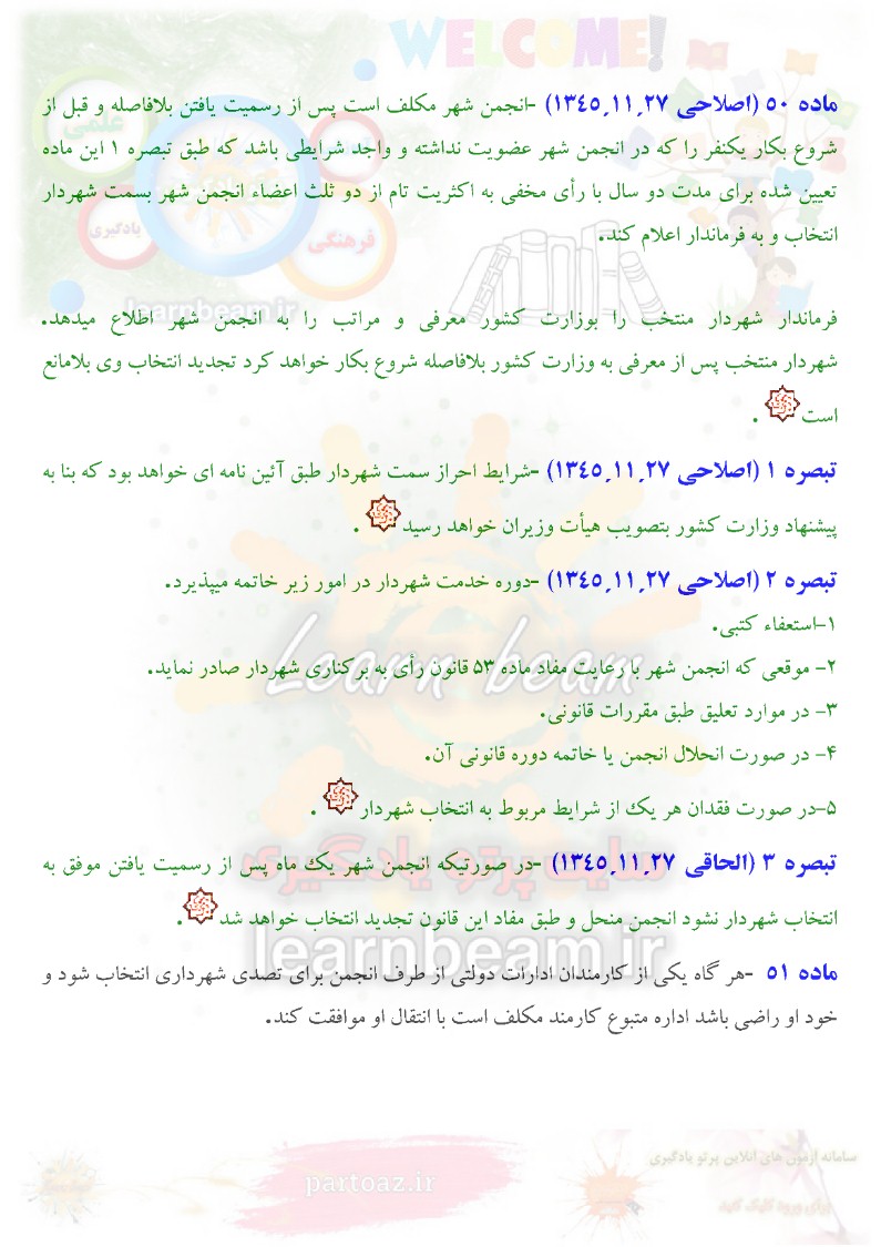 دانلود و مطالعه قانون شهرداری ها در 59 صفحه برای آماگی داوطلبان شرکت کننده در آزمون های استخدامی توصیه می گردد.