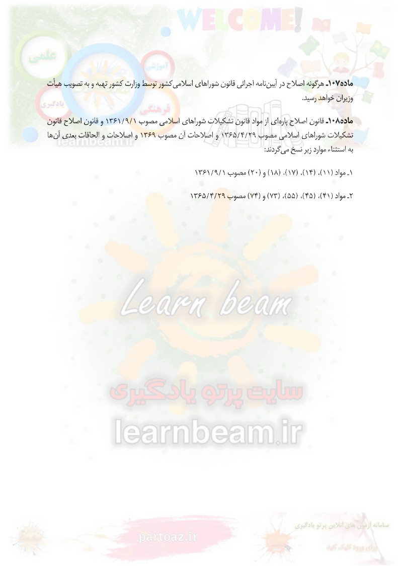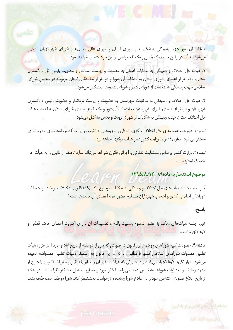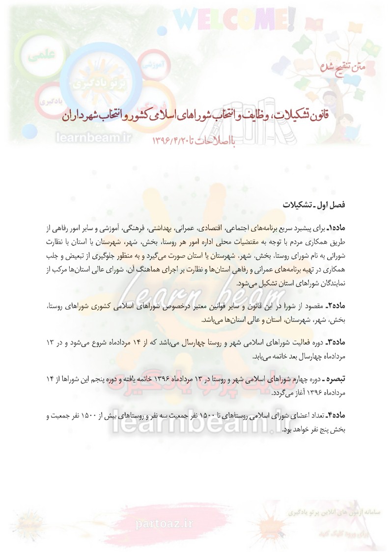دانلود و مطالعه جزوه قانون تشکیلات، وظایف و انتخاب شوراهای اسلامی کشور و انتخاب شهرداران در 43 صفحه برای آماگی داوطلبان شرکت کننده در آزمون های استخدامی توصیه می گردد.