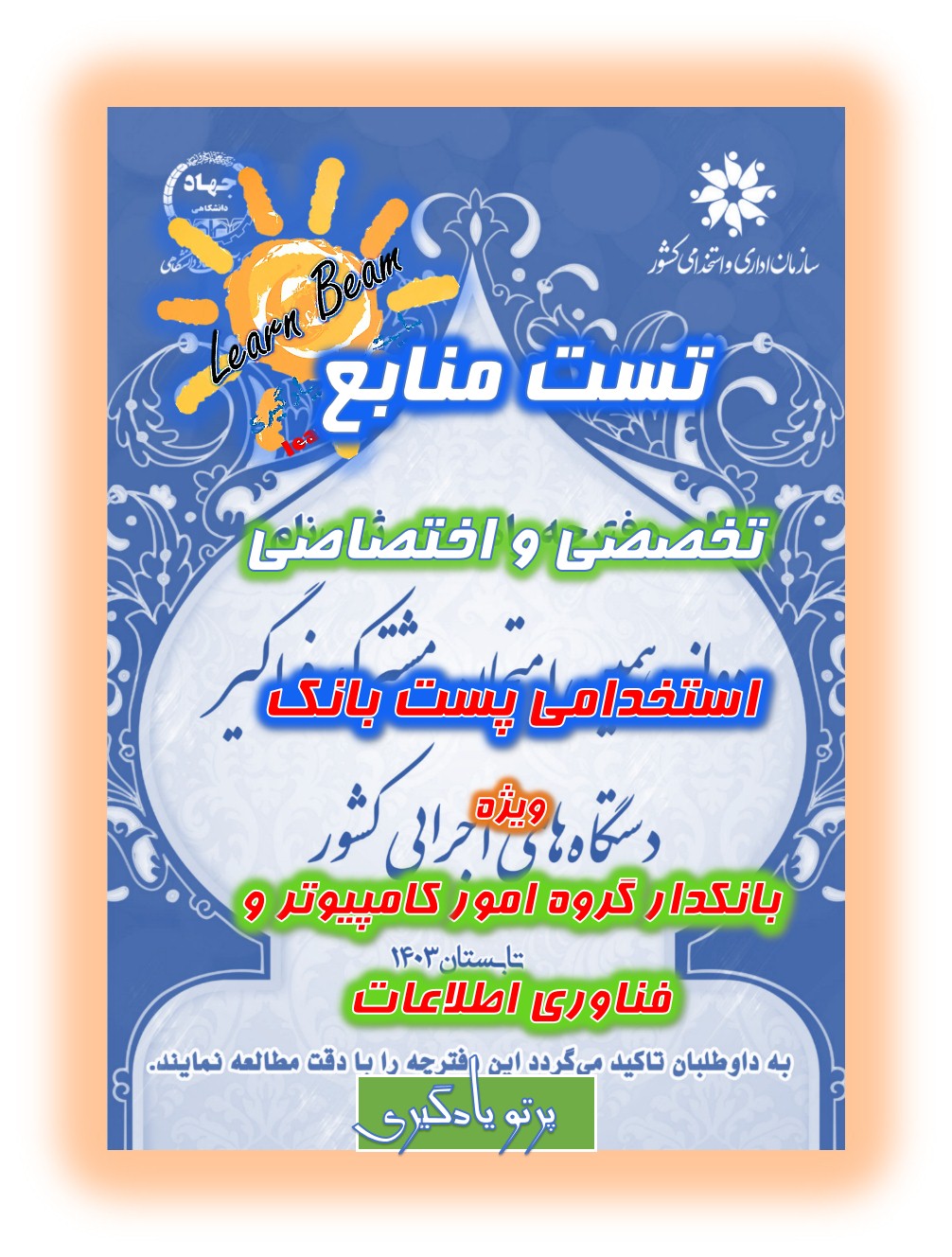 تست منابع تخصصی و اختصاصی پست بانک - بانکدار گروه امور کامپیوتر و فناوری اطلاعات آزمون استخدامی پست بانک سال 1403و 1404 مطابق با منابع دفترچه استخدامی دوازدهمین امتحان مشترک فراگیر دستگاههای اجرایی به منظور تأمین نیروی مورد نیاز و خدمترسانی شایسته به مشتریان، برای تصدی عنوان شغلی بانکدار گروه امور کامپیوتر و فناوری اطلاعات اطلاعات از افراد واجد شرایط را از طریق برگزاری آزمون کتبی در حیطههای عمومی و تخصصی و اختصاصی، ارزیابی تکمیلی و طی مراحل گزینش بهصورت پیمانی استخدام مینماید. داوطلبان محترم می توانند با تهیه سوالات تستیمنابع تخصصی و اختصاصی پست بانک - بانکدار گروه امور کامپیوتر و فناوری برای آزمون استخدامی این بانک که روز جمعه مورخ 12مردادماه ۱۴۰3 برگزار خواهد شد خود را آماده و توانمند نمایند. تلاش گروه پرتو یادگیری با تهیه پک کامل سوالات تستی این آزمون استخدامی، راحتی و دستیابی عادلانه همه داوطلبین این آزمون استخدامی به منابع کامل می باشد. ضمن آرزوی موفقیت برای یکایک عزیزان در آزمون استخدامی پیش رو.