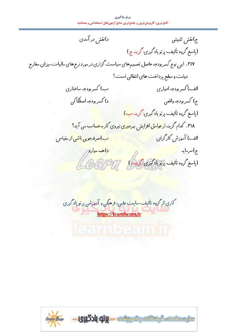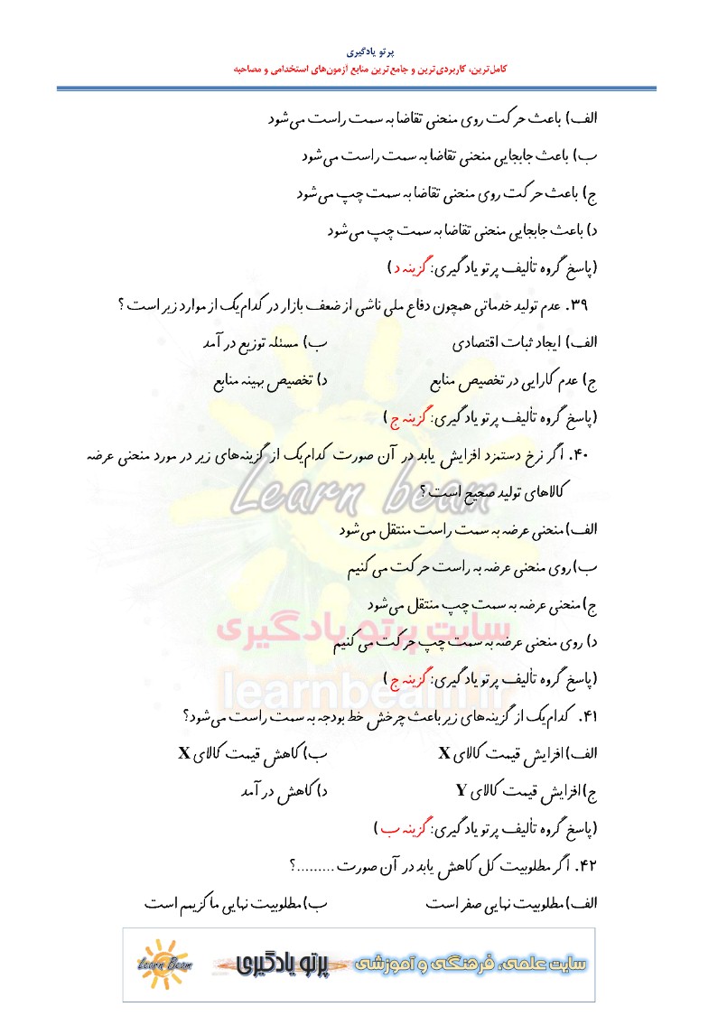 تست اقتصاد خرد و کلان شامل 218 تست باپاسخ در 49 صفحه در قالب فایل pdf قابل چاپ با کیفیت عالی جهت انسجام ذهنی، خودآزمایی و مطالعه سریع داوطلبین شرکت کننده در دوازدهمین امتحان مشترک فراگیر دستگاه های اجرایی کشور و استخدامی دستگاه های اجرایی مطابق با دفترچه ثبت نام و مطابق با سرفصل های اعلام شده در دفترچه راهنمای ثبت نام می باشد.