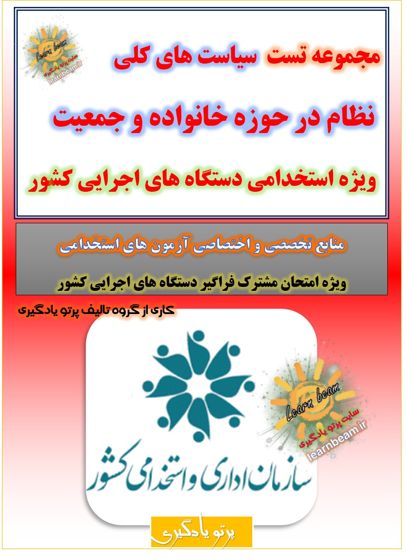 تست سیاست های کلی نظام در حوزه خانواده و جمعیت شامل 30 تست باپاسخ در 8 صفحه در قالب فایل pdf قابل چاپ با کیفیت عالی جهت انسجام ذهنی، خودآزمایی و مطالعه سریع داوطلبین شرکت کننده در دوازدهمین امتحان مشترک فراگیر دستگاه های اجرایی کشور و استخدامی دستگاه های اجرایی مطابق با دفترچه ثبت نام و مطابق با سرفصل های اعلام شده در دفترچه راهنمای ثبت نام می باشد.