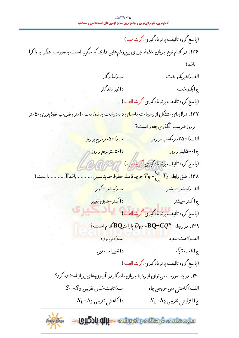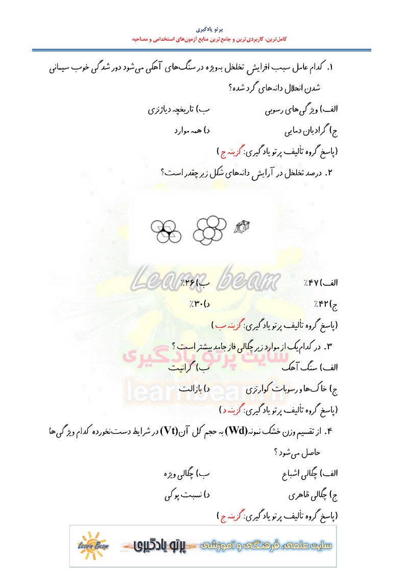 تست اصول هیدروژئولوژی شامل 150 تست باپاسخ در 32 صفحه در قالب فایل pdf قابل چاپ با کیفیت عالی جهت انسجام ذهنی، خودآزمایی و مطالعه سریع داوطلبین شرکت کننده در دوازدهمین امتحان مشترک فراگیر دستگاه های اجرایی کشور و استخدامی دستگاه های اجرایی مطابق با دفترچه ثبت نام و مطابق با سرفصل های اعلام شده در دفترچه راهنمای ثبت نام می باشد.