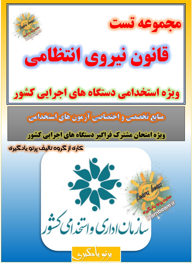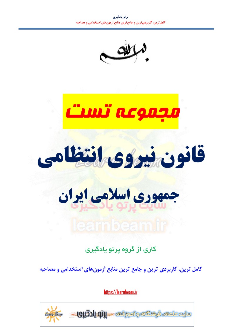 تست قانون نیروی انتظامی جمهوری اسلامی ایران شامل 24 تست باپاسخ در 7 صفحه در قالب فایل pdf قابل چاپ با کیفیت عالی جهت انسجام ذهنی، خودآزمایی و مطالعه سریع داوطلبین شرکت کننده در دوازدهمین امتحان مشترک فراگیر دستگاه های اجرایی کشور و استخدامی دستگاه های اجرایی مطابق با دفترچه ثبت نام و مطابق با سرفصل های اعلام شده در دفترچه راهنمای ثبت نام می باشد.