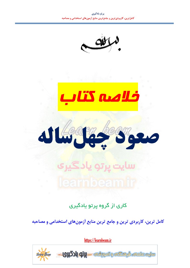 خلاصه کتاب صعود چهل ساله در 44 صفحه در قالب فایل pdf قابل چاپ با کیفیت عالی جهت انسجام ذهنی، خودآزمایی و مطالعه سریع داوطلبین شرکت کننده در آزمون استخدامی آموزش و پرورش مطابق با دفترچه راهنمای ثبت نام و مطابق با سرفصل های اعلام شده در دفترچه راهنمای ثبت نام.