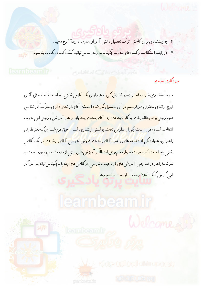 نمونه آزمون موردکاوی ویژه آزمون صلاحیت حرفه ای راهبران مدارس چندپایه روستایی و عشایری