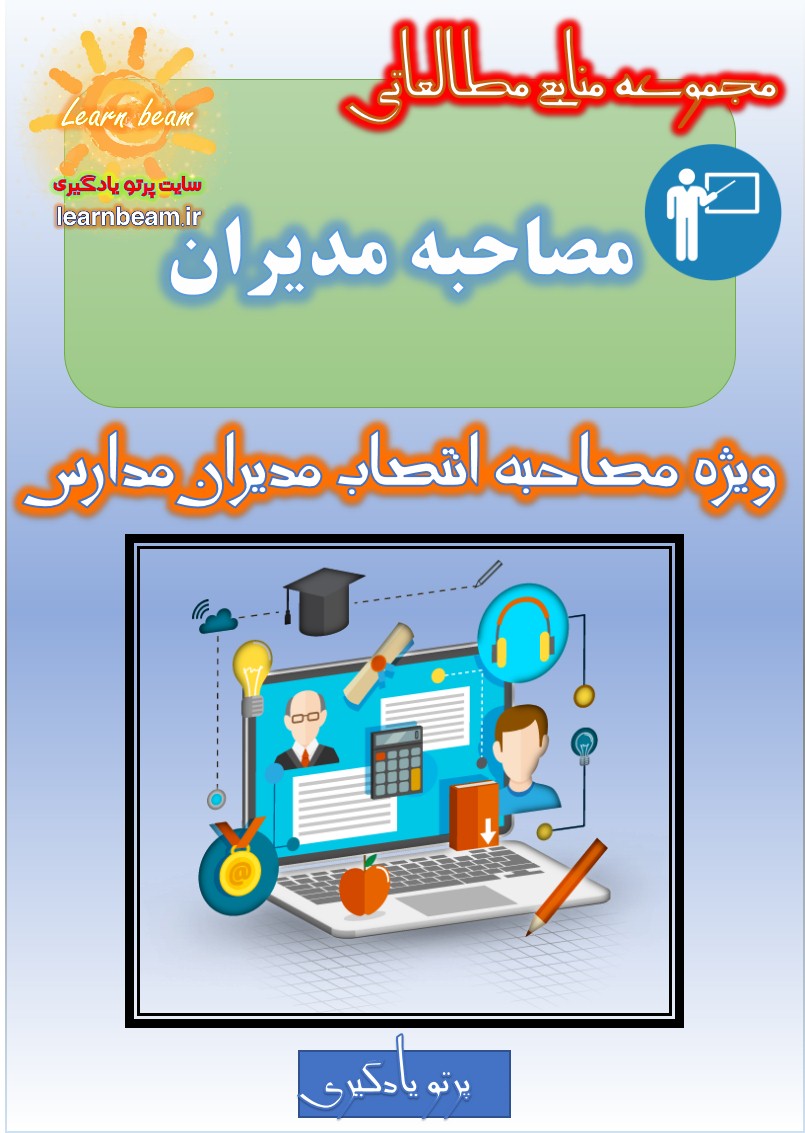سایت علمی، آموزشی و فرهنگی پرتو یادگیری این مجموعه را صرفا جهت آمادگی برای مصاحبه معلمان عزیز متقاضی انتصاب در پست مدیریت مدارس آماده و ارایه نموده است.