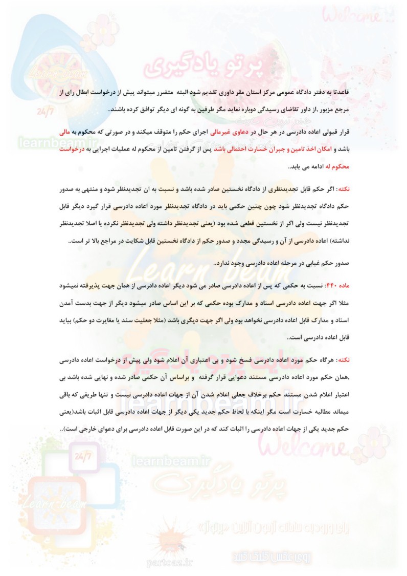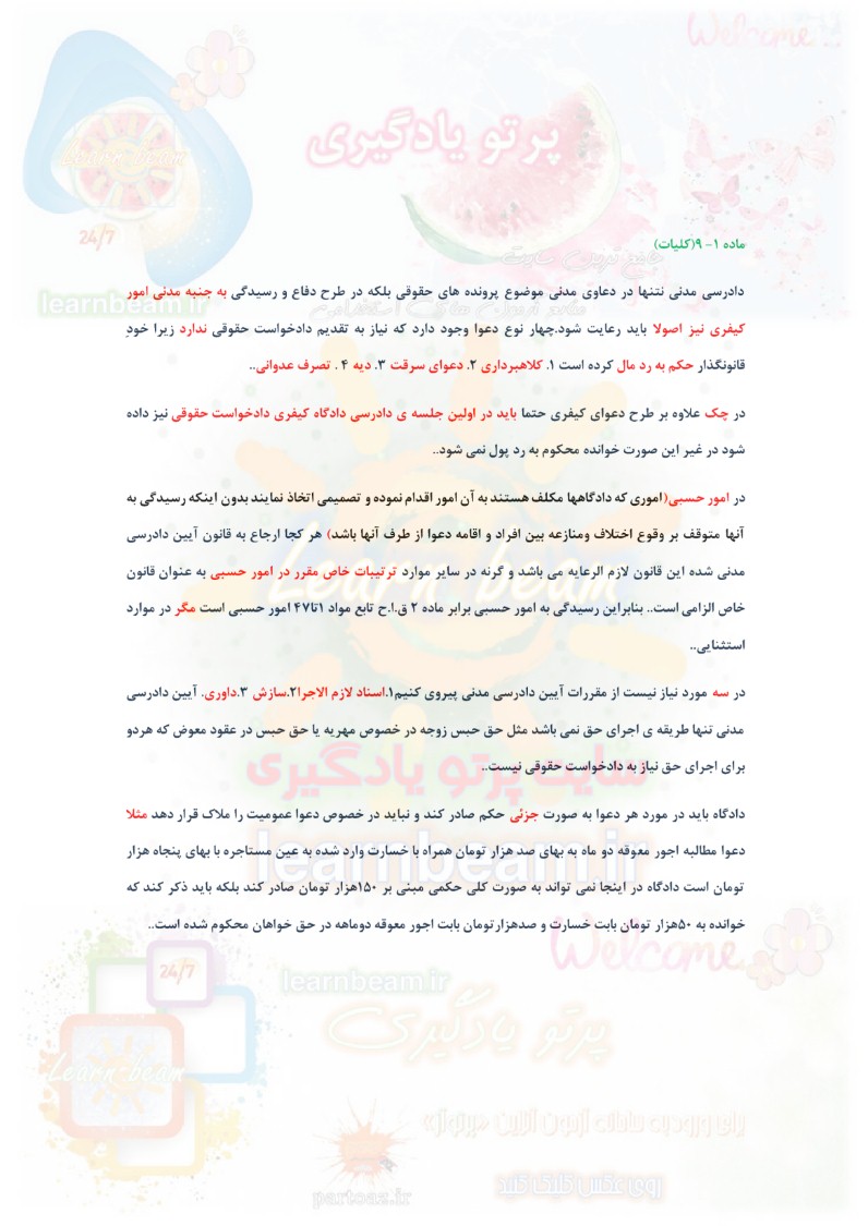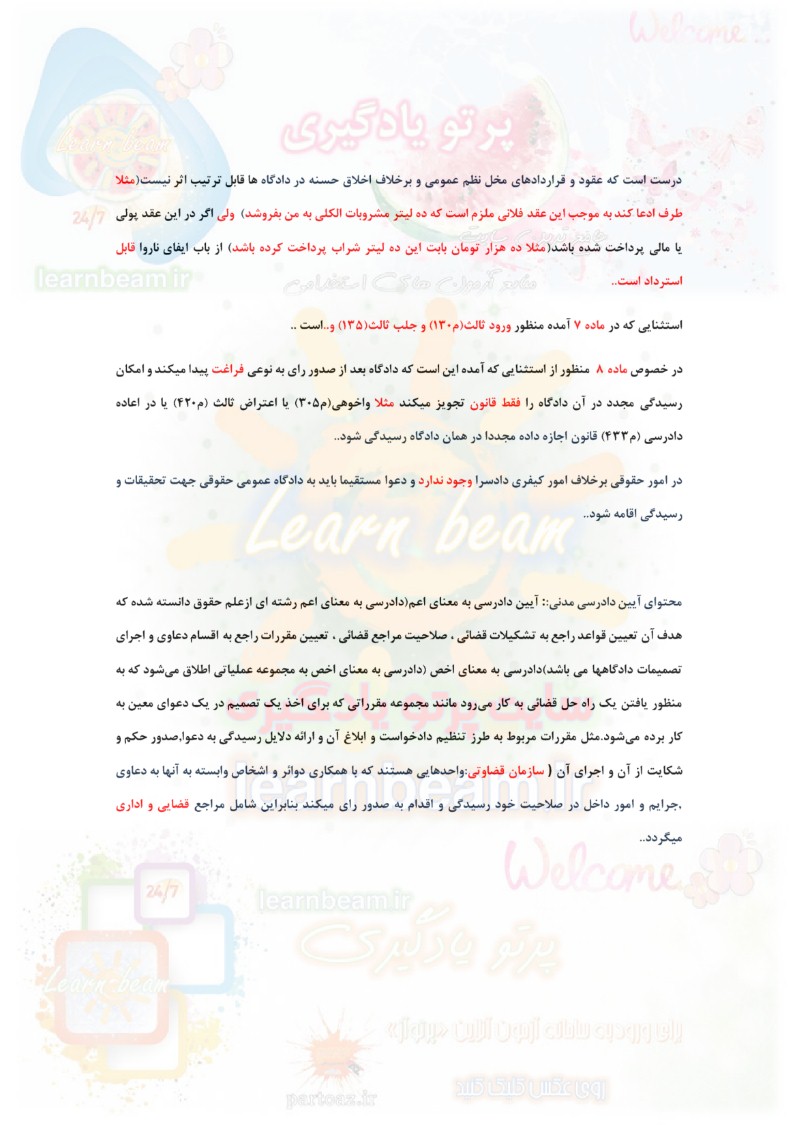 سایت علمی، آموزشی و فرهنگی پرتو یادگیری این مجموعه را صرفا جهت آمادگی برای متقاضیان آزمون های حقوقی آماده و ارایه نموده است.