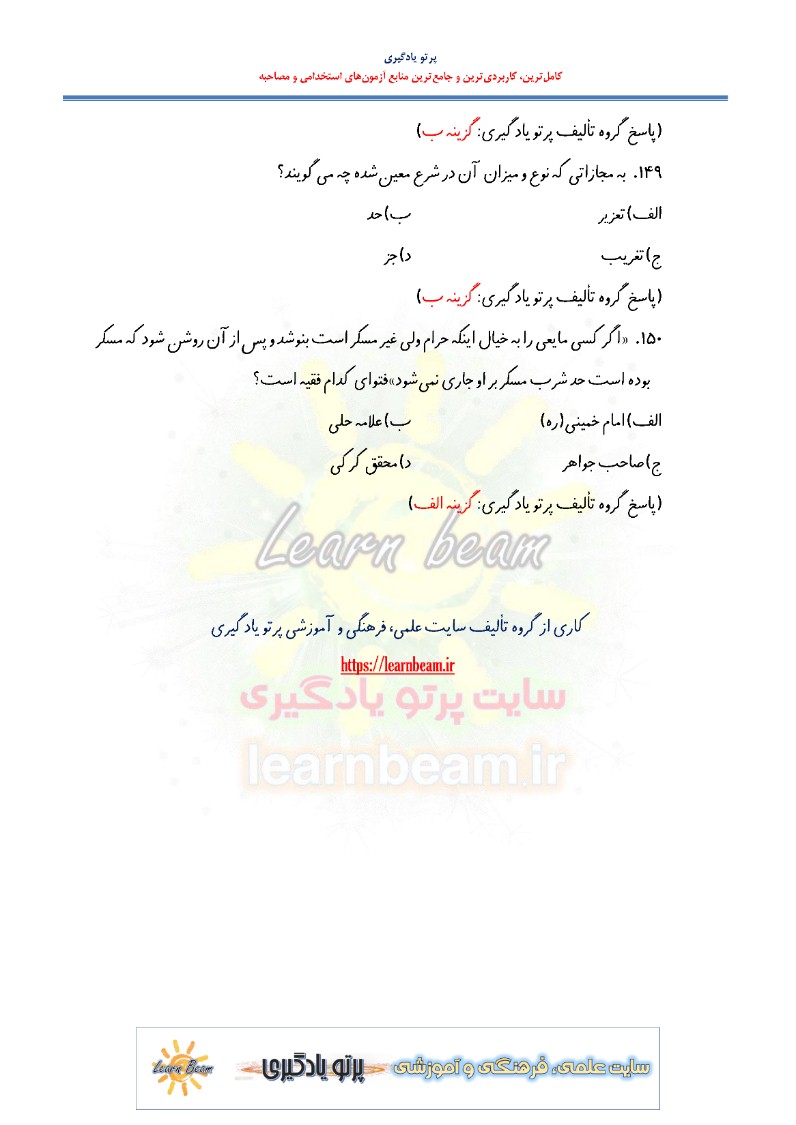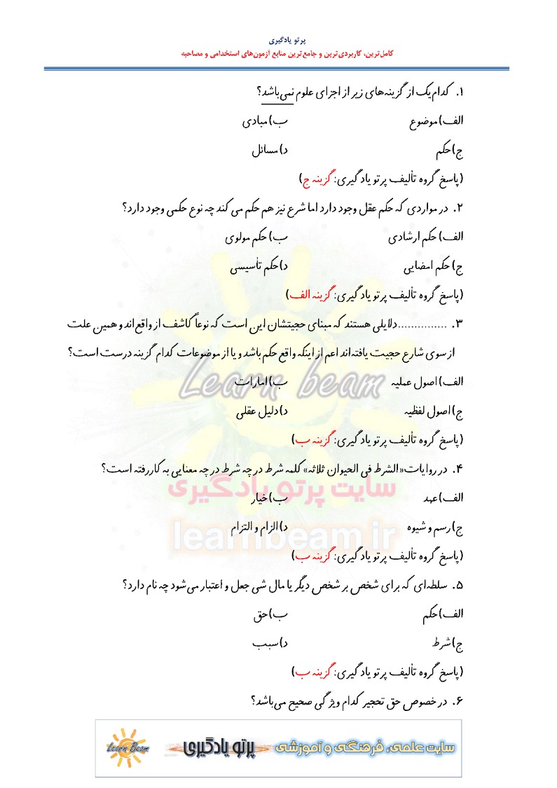 سایت علمی، آموزشی و فرهنگی پرتو یادگیری این مجموعه را صرفا جهت آمادگی برای متقاضیان آزمون های حقوقی آماده و ارایه نموده است.