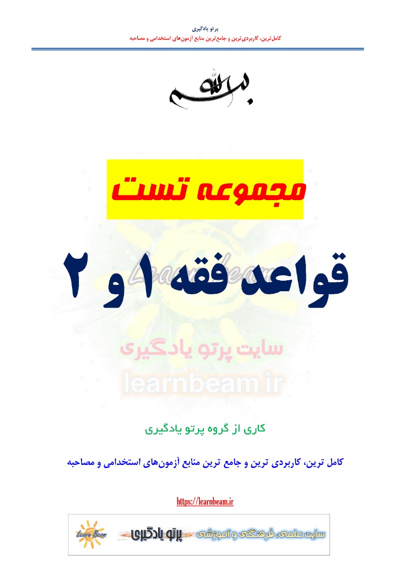 تست کتاب قواعد فقه. سوالات تستی کتاب قواعد فقه 1 و 2 مجموعه سوالات تستی کتاب قواعد فقه شامل 150 سوال تستی در 31 صفحه در قالب فایل pdf. جهت آشنایی داوطلبین با نکات کلیدی کتاب قواعد فقه و جهت تجمیع و سازماندهی ذهنی و آمادگی برای آزمون های حقوقی پیش رو. تهیه و مطالعه جزوه سوالات تستی کتاب قواعد فقه به داوطلبین عزیز پیشنهاد می گردد.