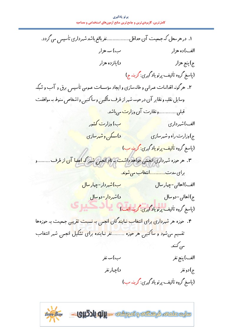 دانلود و مطالعه مجموعه سوالات تستی قانون شهرداری ها برای آماگی داوطلبان شرکت کننده در آزمون های استخدامی توصیه می گردد.