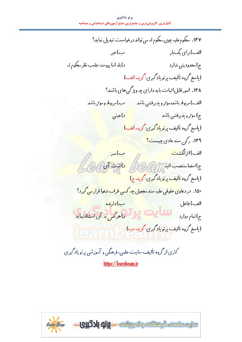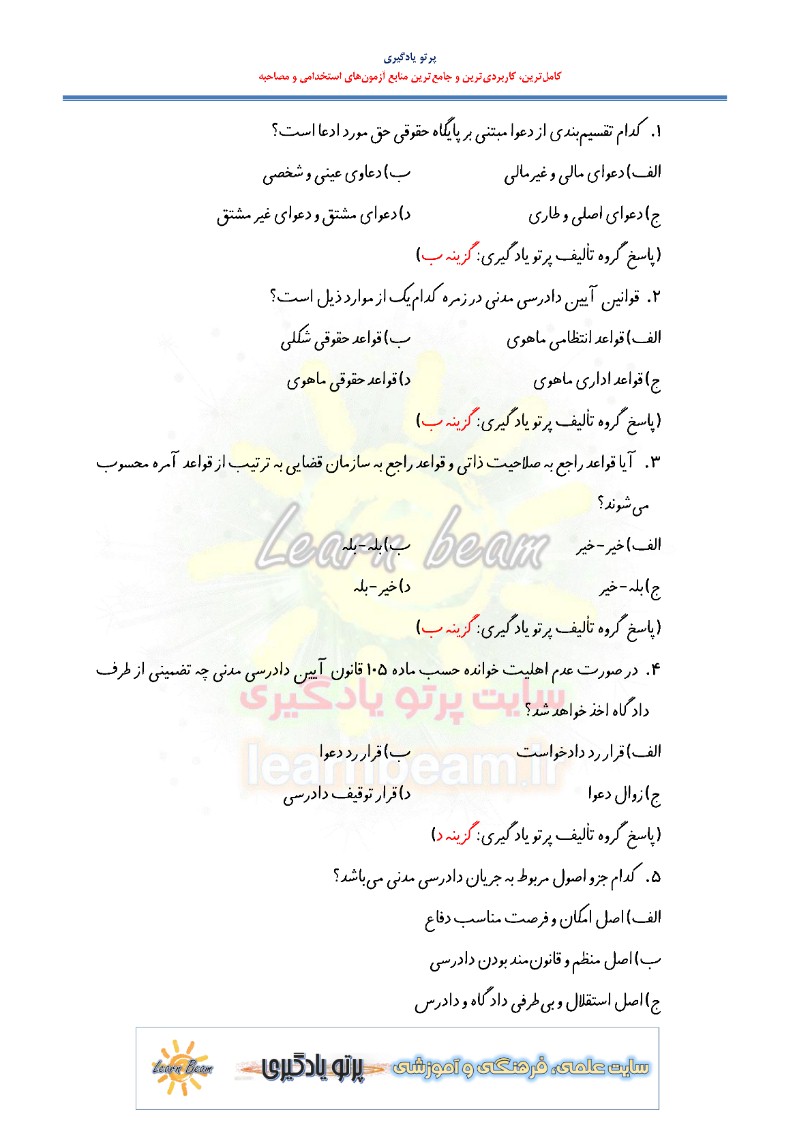 سایت علمی، آموزشی و فرهنگی پرتو یادگیری این مجموعه را صرفا جهت آمادگی برای متقاضیان آزمون های حقوقی آماده و ارایه نموده است.