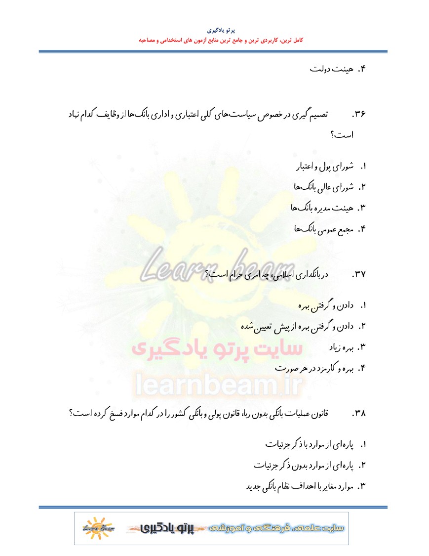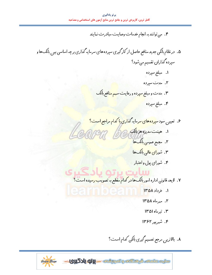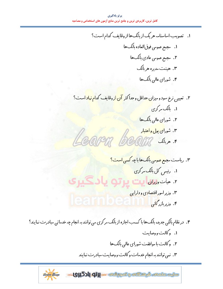 مجموعه سوالات تستی بانکداری داخلی شرکت کنندگان آزمون استخدامی بانک ها را در مرور سریع مفاهیم و موضوعات مهم یاری رسان خواهد بود.