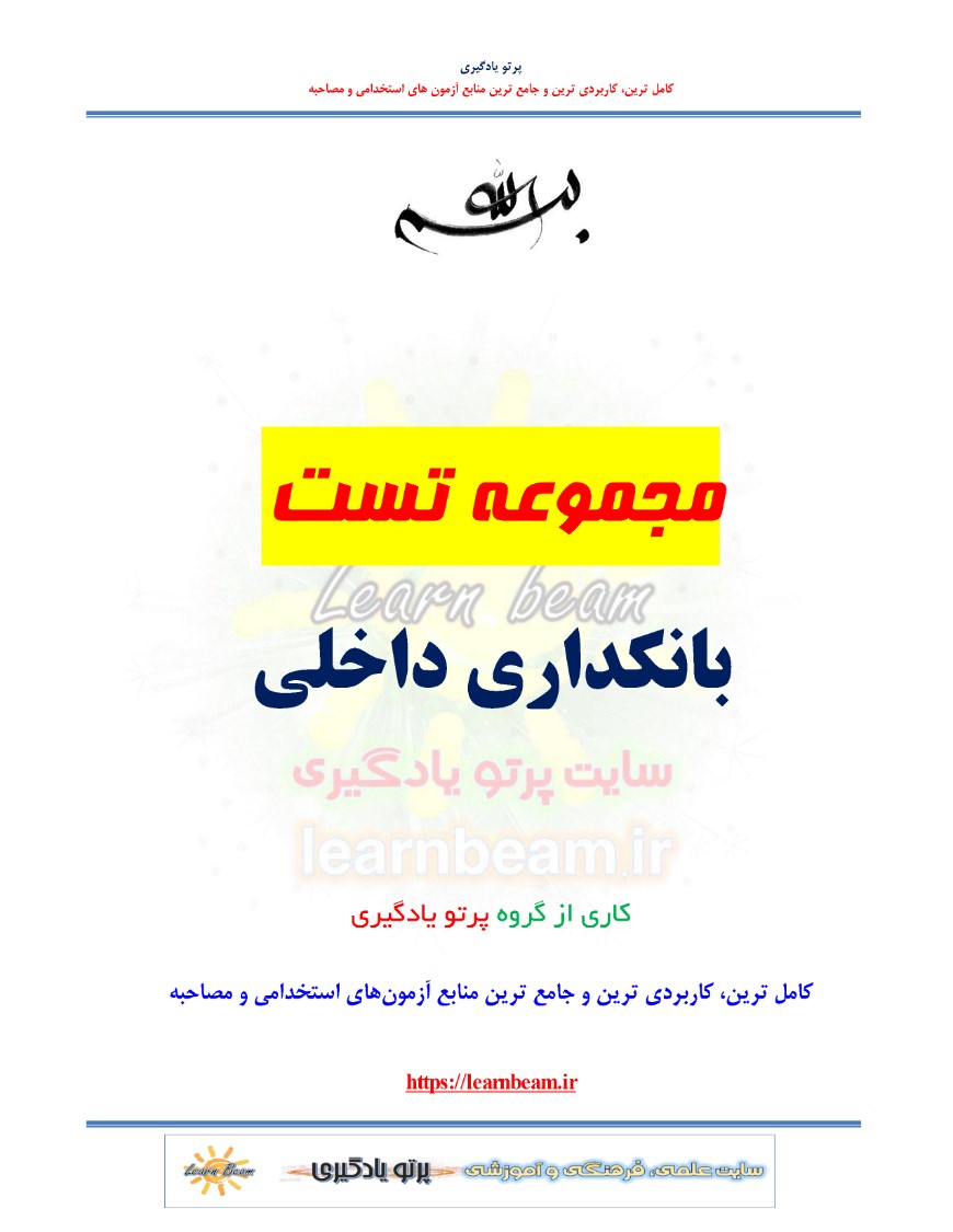 تست بانکداری داخلی مجموعه سوالات تستی بانکداری داخلیبا پاسخنامه آزمون استخدامی بانک ها شامل 160 سوال تستی در 50 صفحه به صورت pdf جزوه سوال تستی بانکداری داخلی با پاسخنامه. مجموعه سوالات تستی بانکداری داخلی شرکت کنندگان در آزمون استخدامی بانک ها را در مرور سریع کمک کرده و آن ها را یاری رسان خواهد بود.