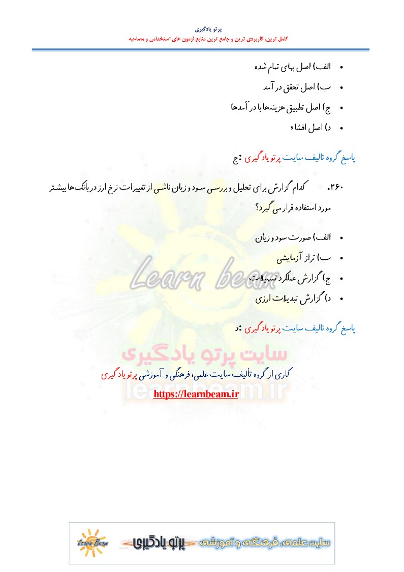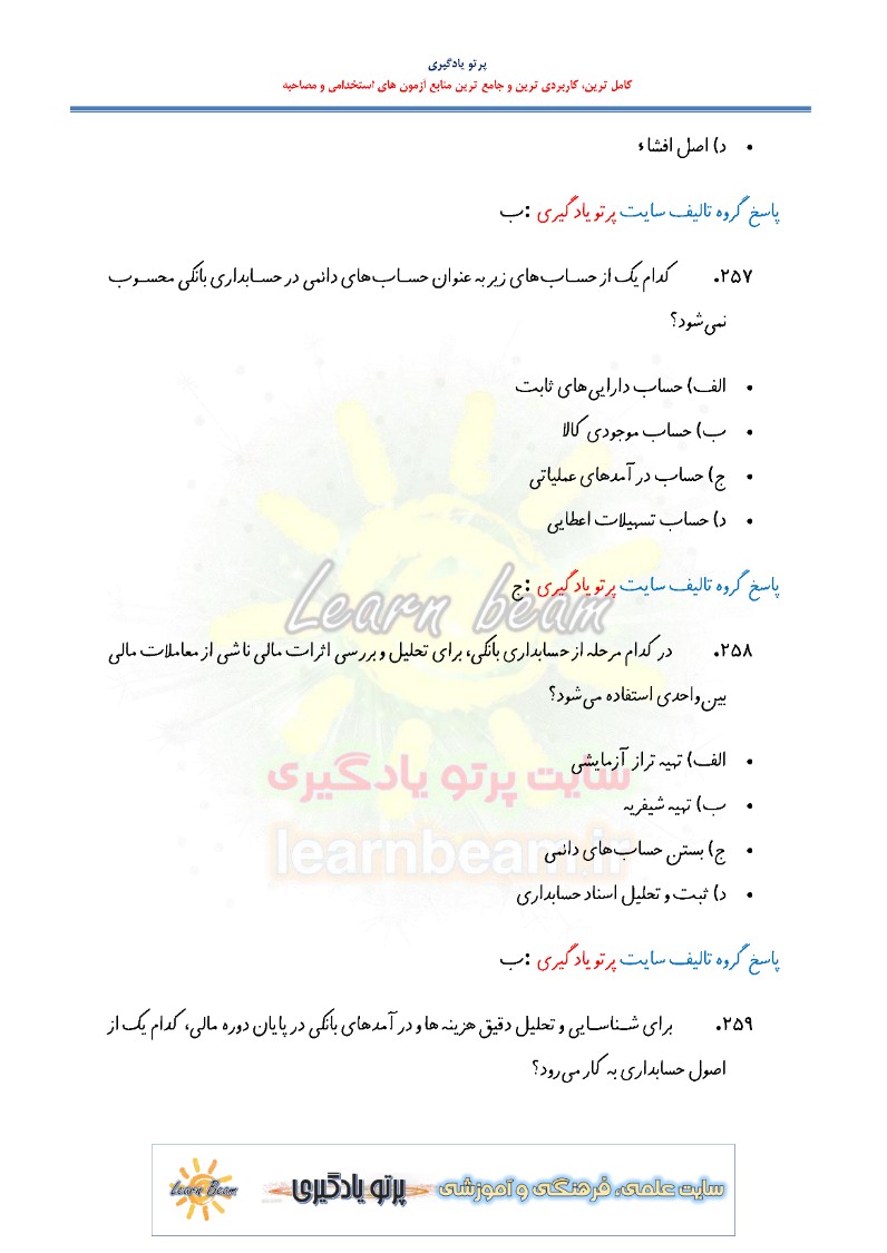 تست حسابداری بانکی مجموعه سوالات تستی حسابداری بانکی آزمون استخدامی بانک ها شامل 260 سوال تستی در 94 صفحه به صورت pdf جزوه سوال تستی حسابداری بانکی با پاسخنامه. مجموعه سوالات تستی حسابداری بانکی شرکت کنندگان در آزمون استخدامی بانک ها را در مرور سریع کمک کرده و آن ها را یاری رسان خواهد بود.