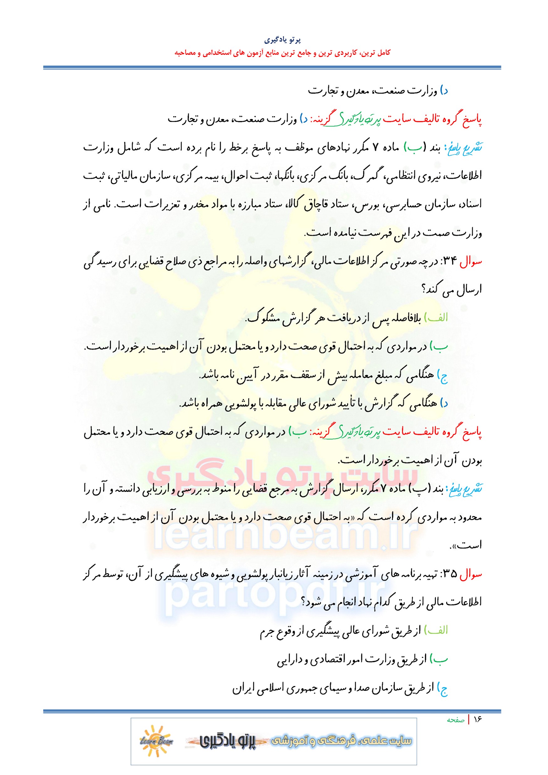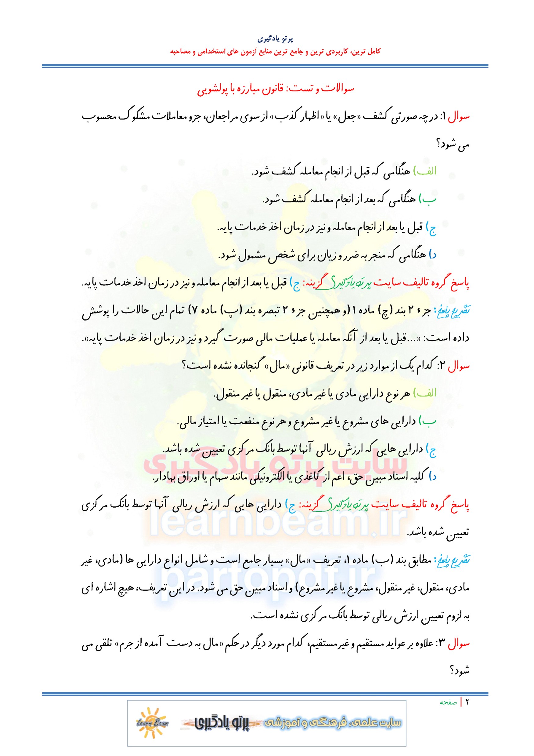 دانلود سوالات تستی قانون مبارزه با پولشویی با پاسخ تشریحی جزوه سوالات تستی قانون مبارزه با پولشویی آزمون استخدامی بانک ها شرکت کنندگان در آزمون استخدامی را در مرور سریع مفاهیم و موضوعات آماده نموده و یاری رسان خواهد بود . تست قانون مبارزه با پولشویی می تواند داوطلبین آزمون استخدامی بانک ها را برای آزمون پیش رو آماده نماید. داوطلبین عزیز می توانند با تهیه، دانلود و مطالعه سوالات تستی قانون مبارزه با پولشویی بهتر از سایر شرکت کنندگان در آزمون استخدامی بانک ها عمل نمایند.