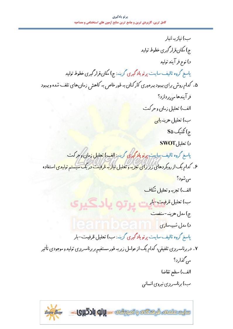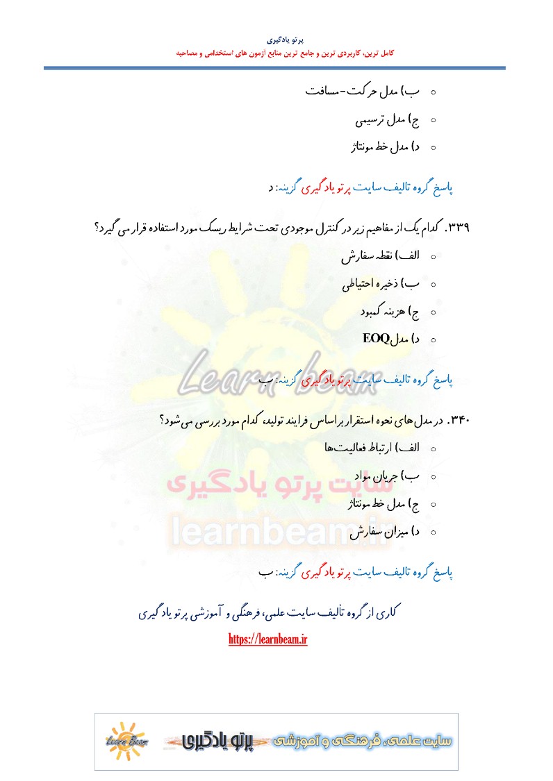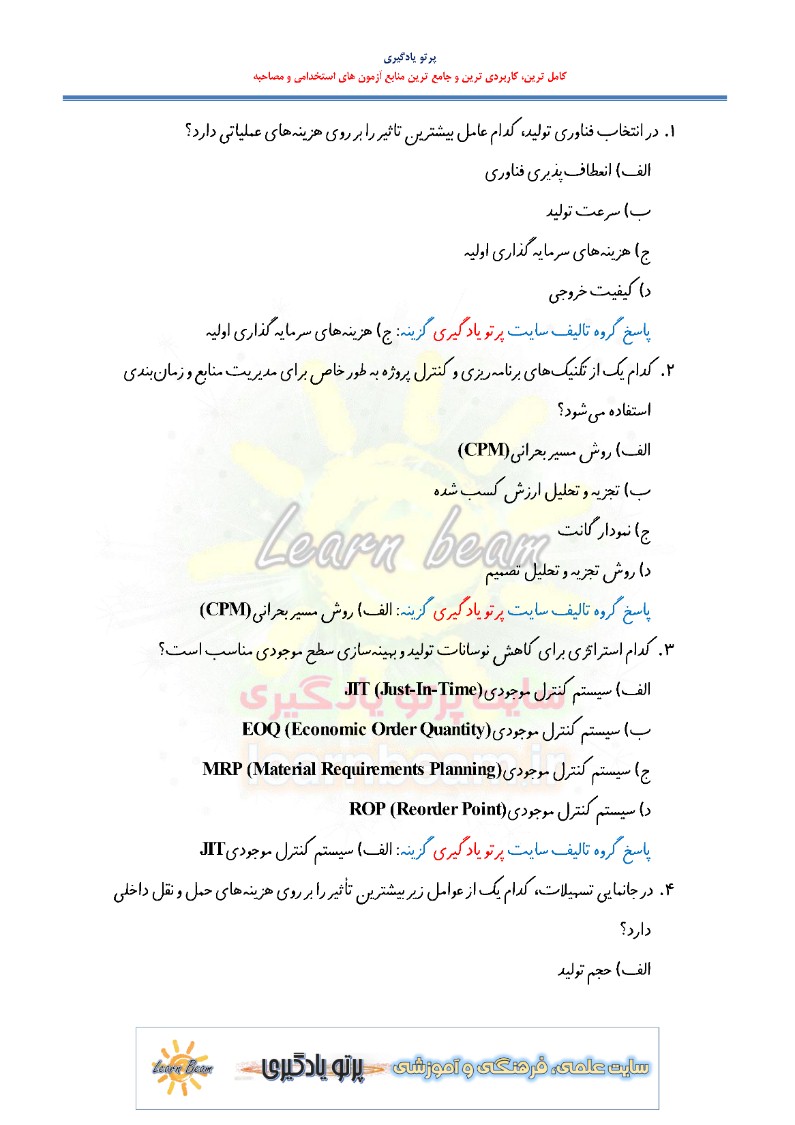 تست مدیریت تولید و عملیات مجموعه سوالات تستی مدیریت تولید و عملیات آزمون استخدامی بانک ها شامل 340 سوال تستی در 110 صفحه به صورت pdf جزوه سوال تستی مدیریت تولید و عملیات با پاسخنامه. مجموعه سوالات تستی مدیریت تولید و عملیات شرکت کنندگان در آزمون استخدامی بانک ها را در مرور سریع کمک کرده و آن ها را یاری رسان خواهد بود.