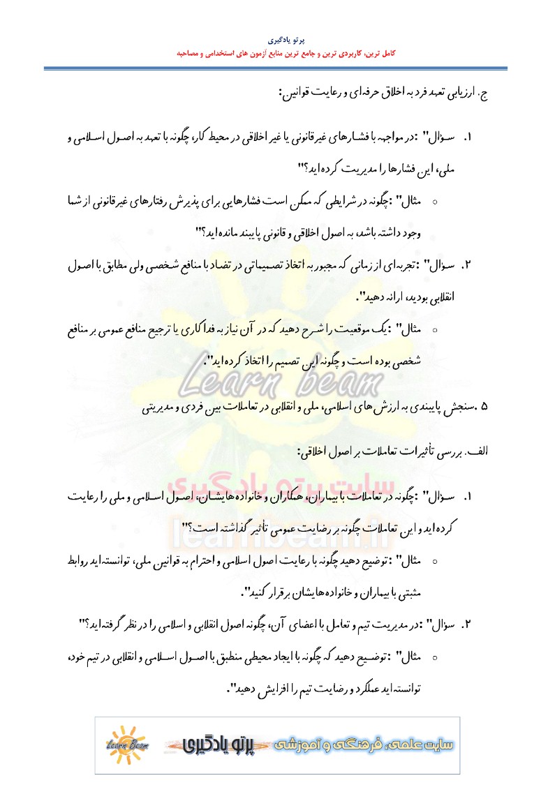 «مطابق با محورهای مطرح شده در دفترچه آزمون»