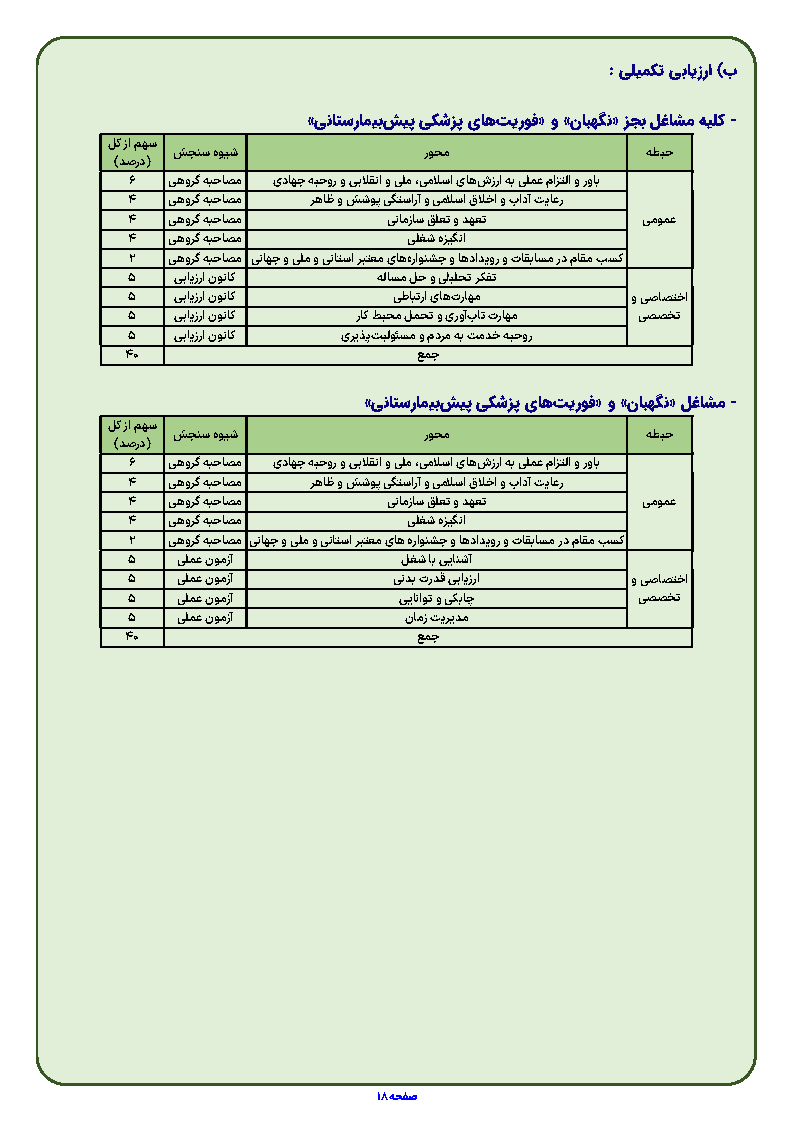 0 تا 100 آمادگی برای مصاحبه کلیه مشاغل بجز «نگهبان» و «فوریتهای پزشکی پیش بیمارستانی»
